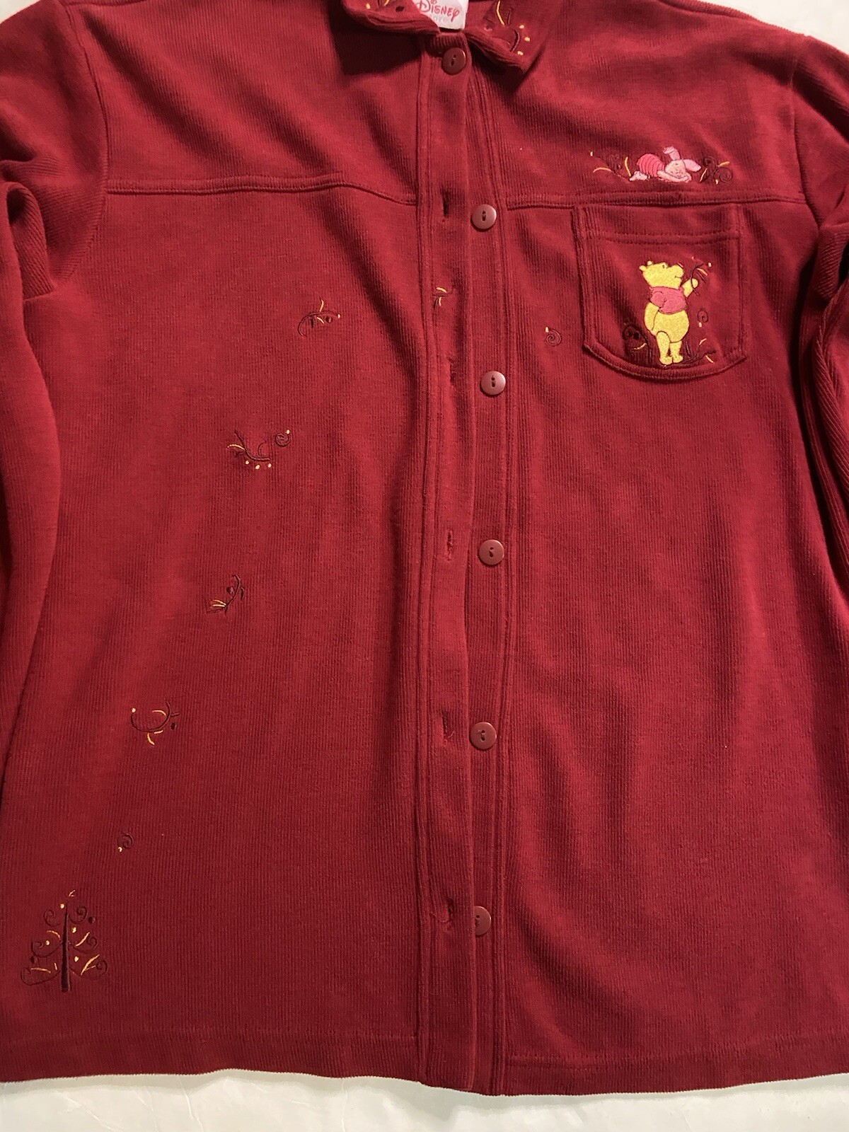 как выглядит Vtg Disney Winnie The Pooh Womens Corduroy Button Shirt Red Long Sleeve Top Med фото