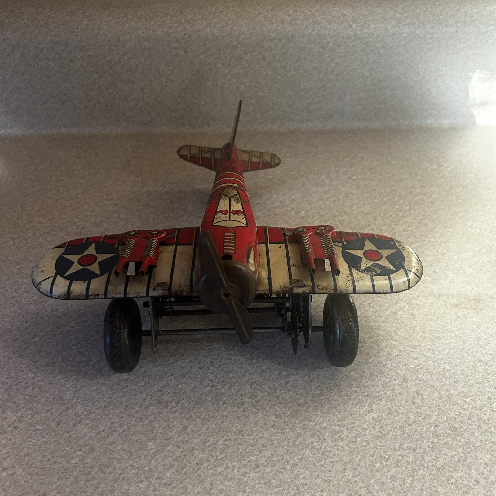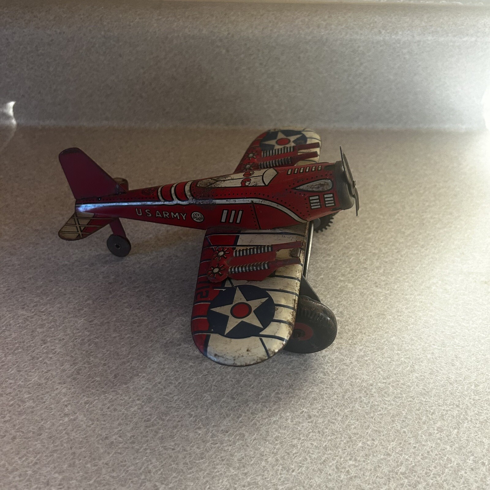 как выглядит VINTAGE MARX TIN WINDUP RED US ARMY SPARKLING AIRPLANE фото