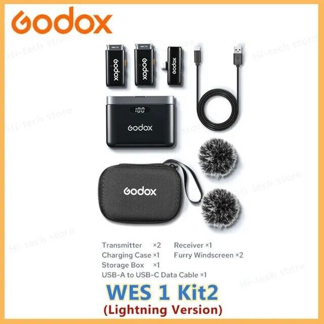 Godox WES1 Kit2 656ft Wireless Lavalier Microphone for iOS iPhone 14 13 12 iPad