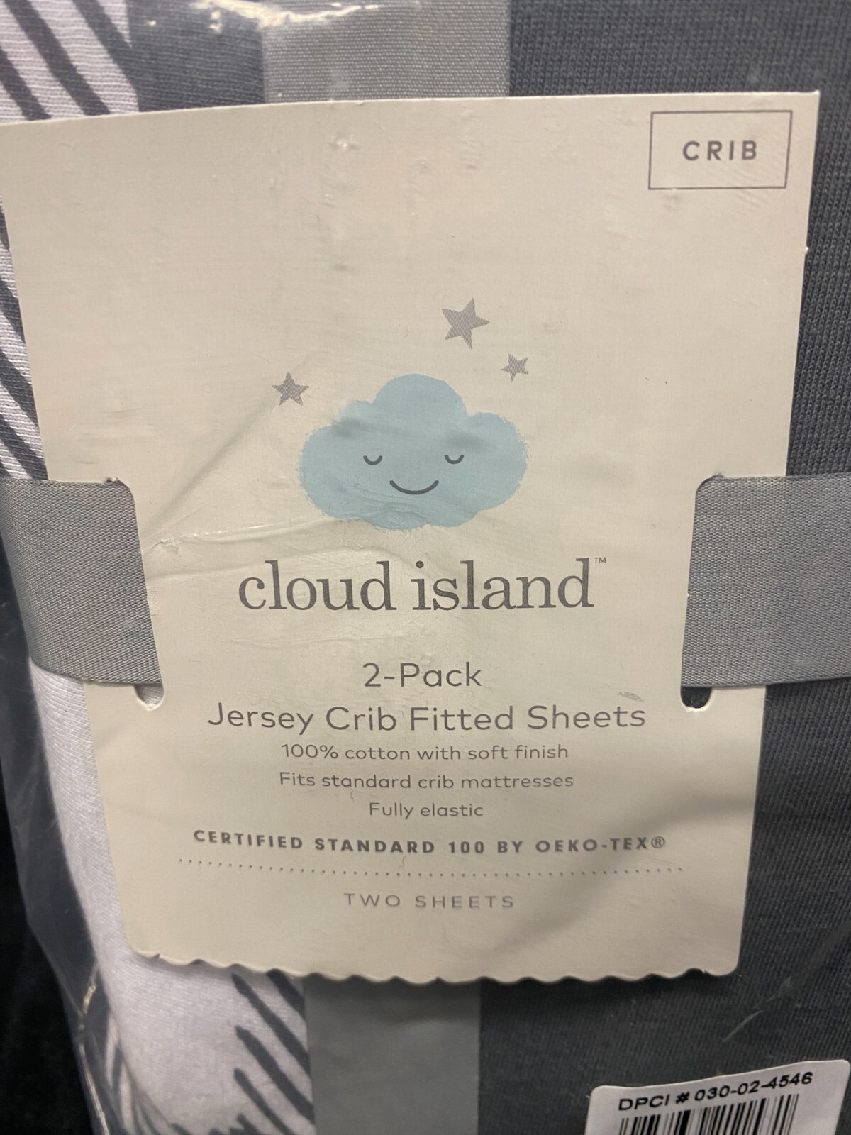 как выглядит Fitted Jersey Crib Sheet - Cloud Island - Solid Gray and Grey White Plaid 2pk фото
