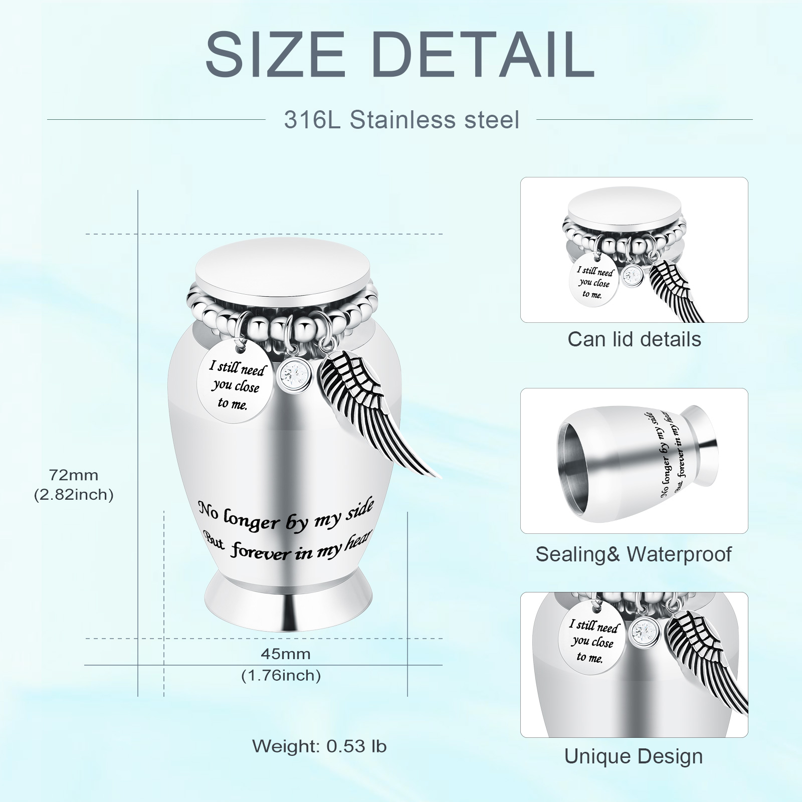 7 4cm Personalized Stainless Steel Cremation Urn for Human Pet Ashes Keepsake