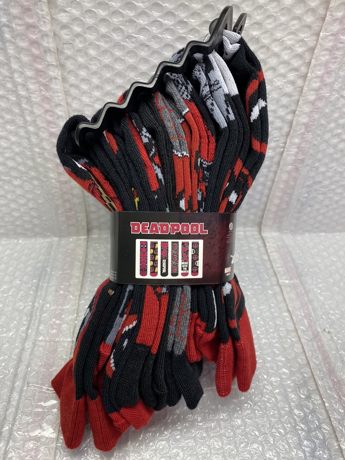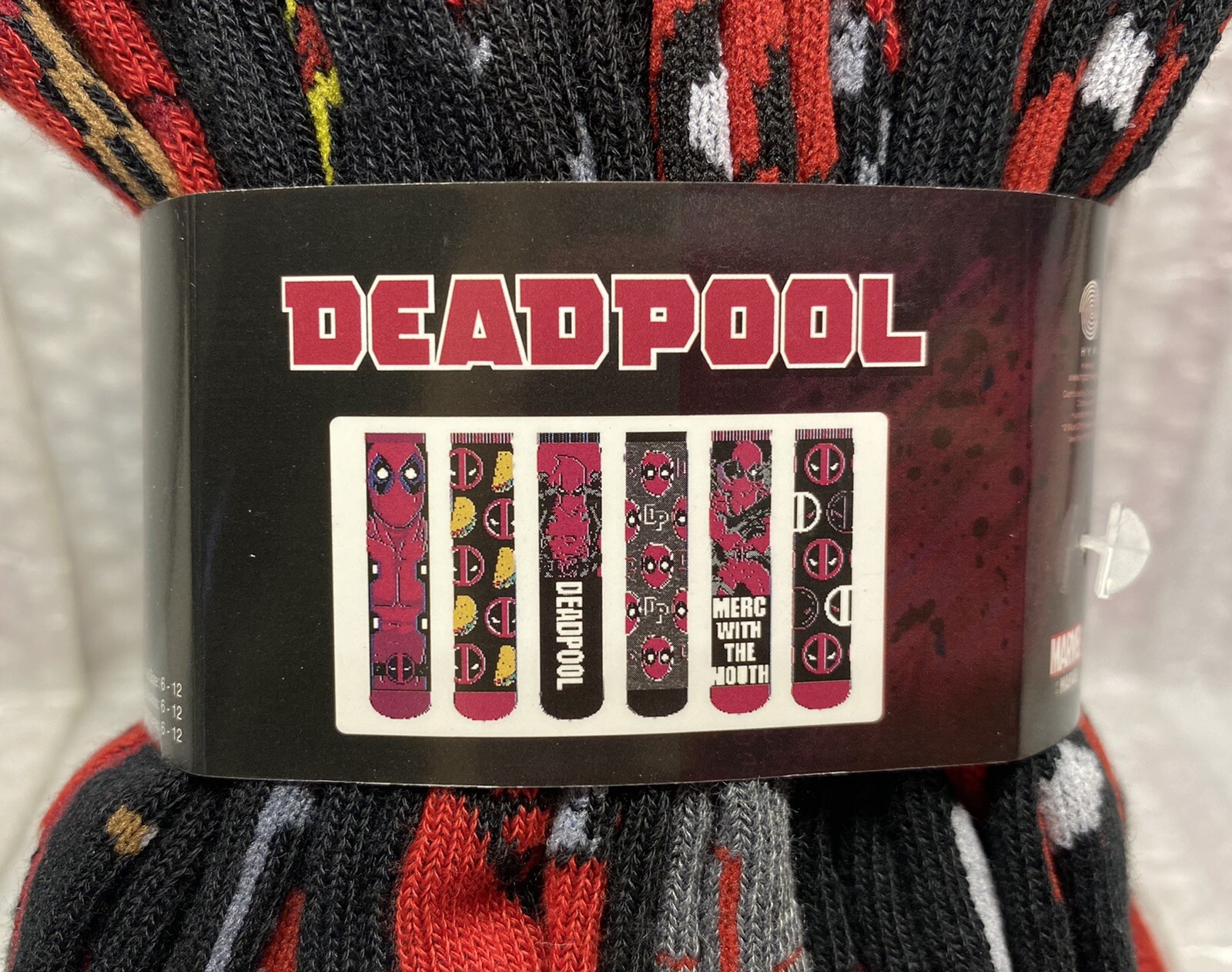 6 Pairs of Marvel Deadpool Crew Socks Size 6-12 NWT