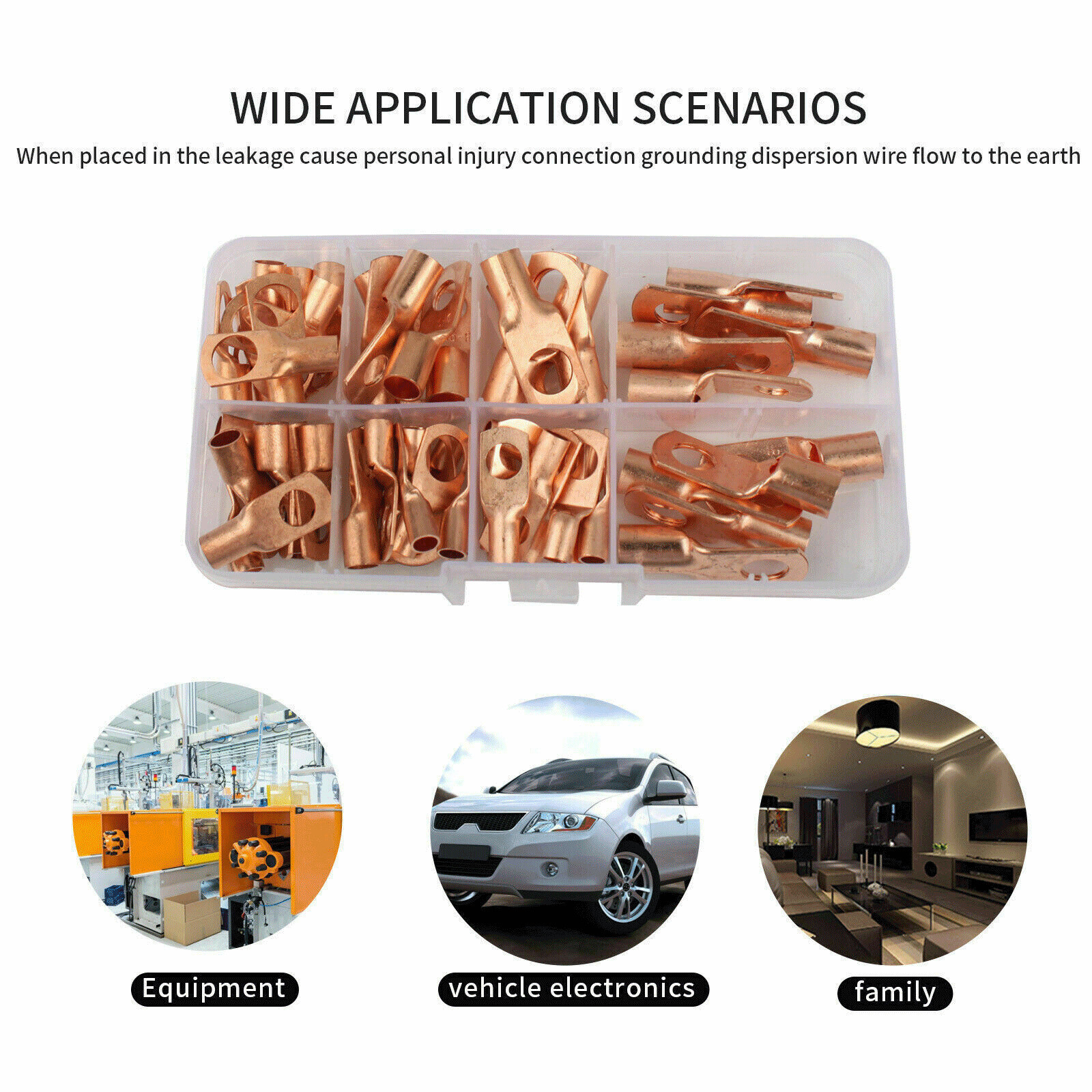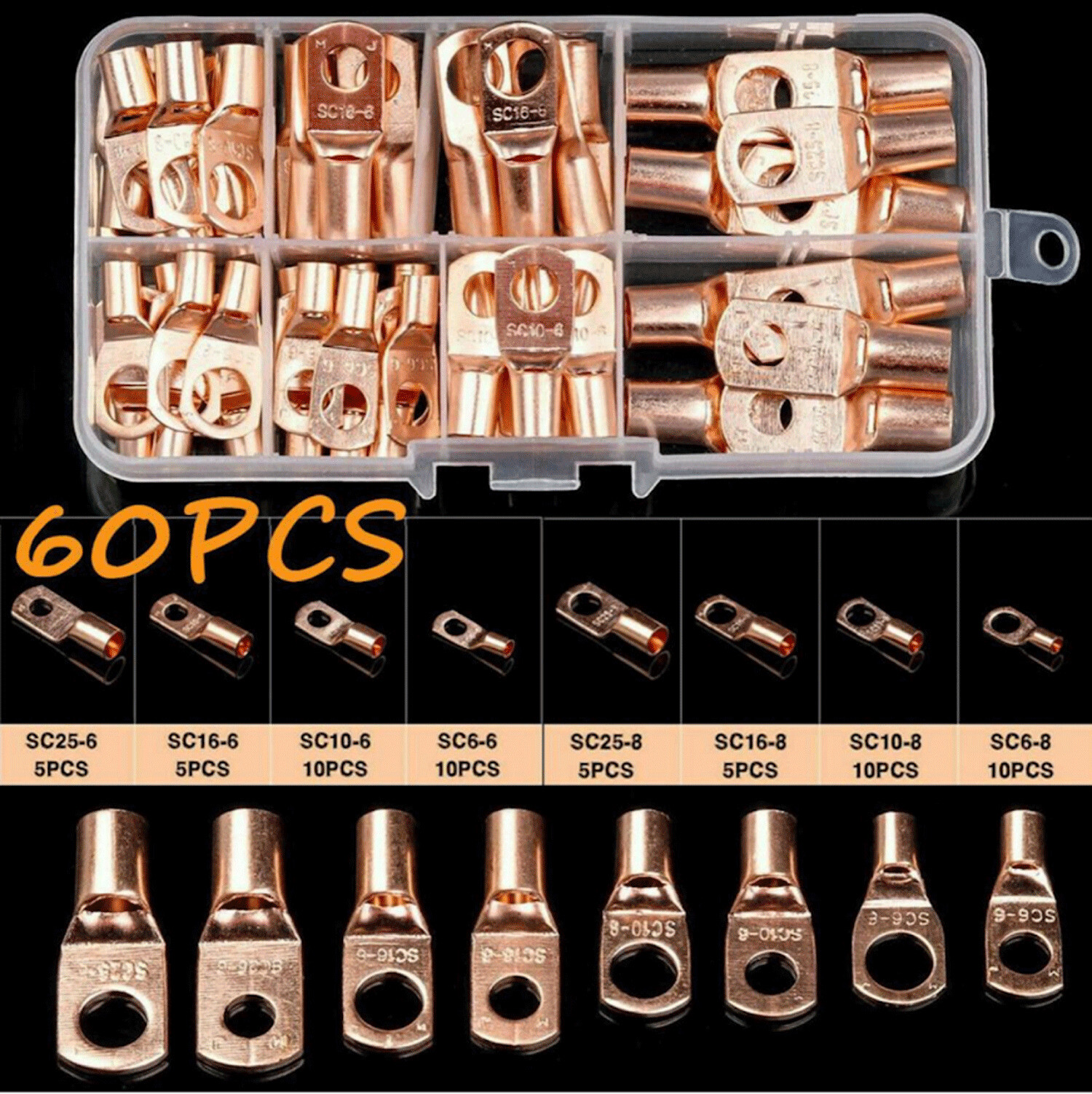 60pcs Copper Wire Lugs Battery Cable Ends Terminal Connectors Assortment Kit