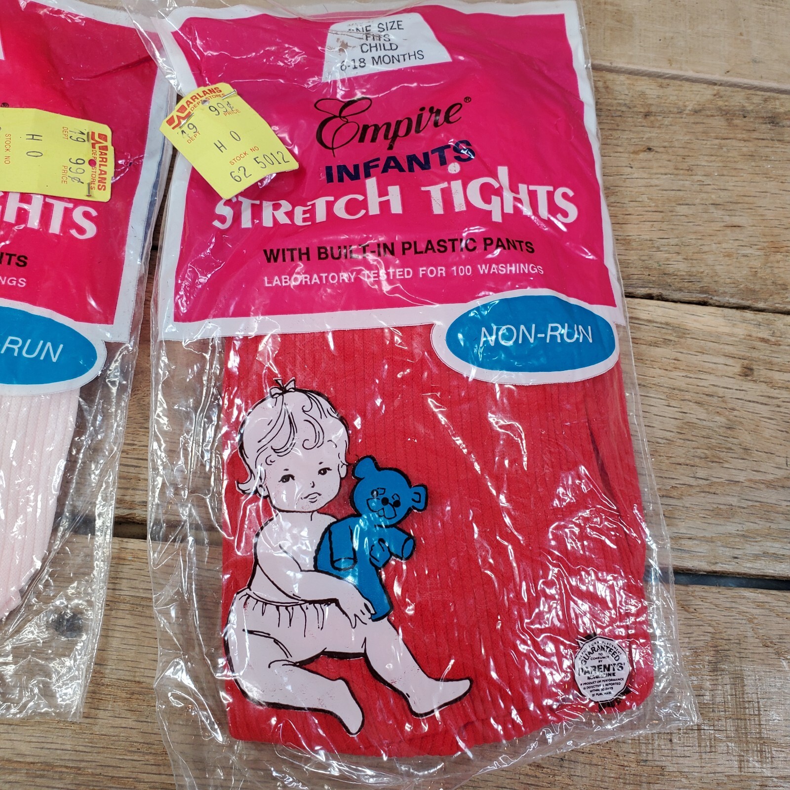 VTG 1970 Empire Shield Baby Infant Stretch Tights Red Pink New NOS