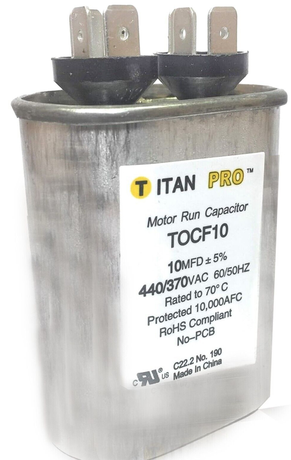 • 1 Pc Titan TOCF10 10 MFD 440 370V Oval Motor Run Capacitor Replacement