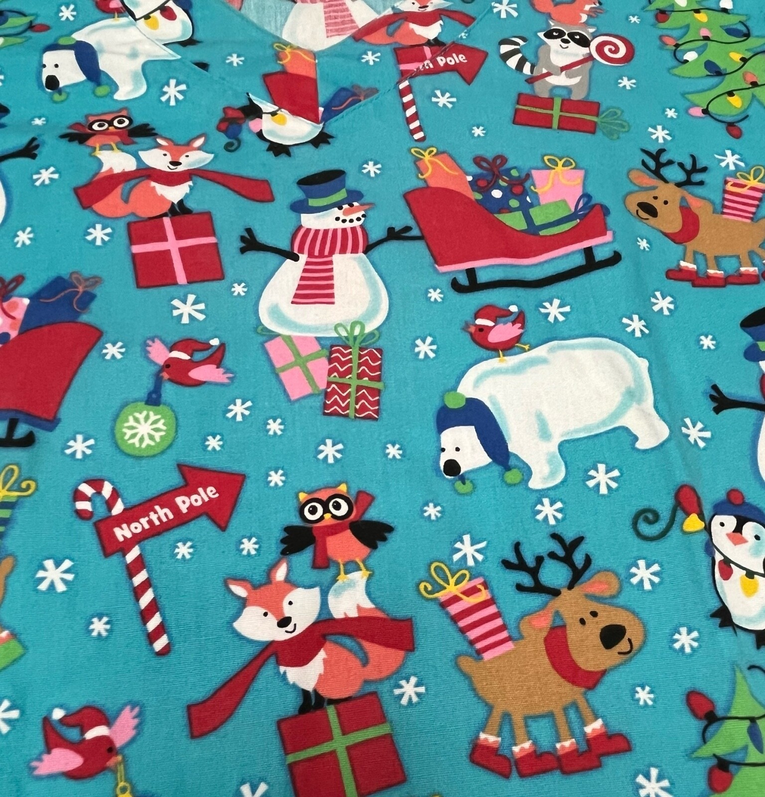 UA Scrubs Christmas Themed Scrub Top Women s Size Large