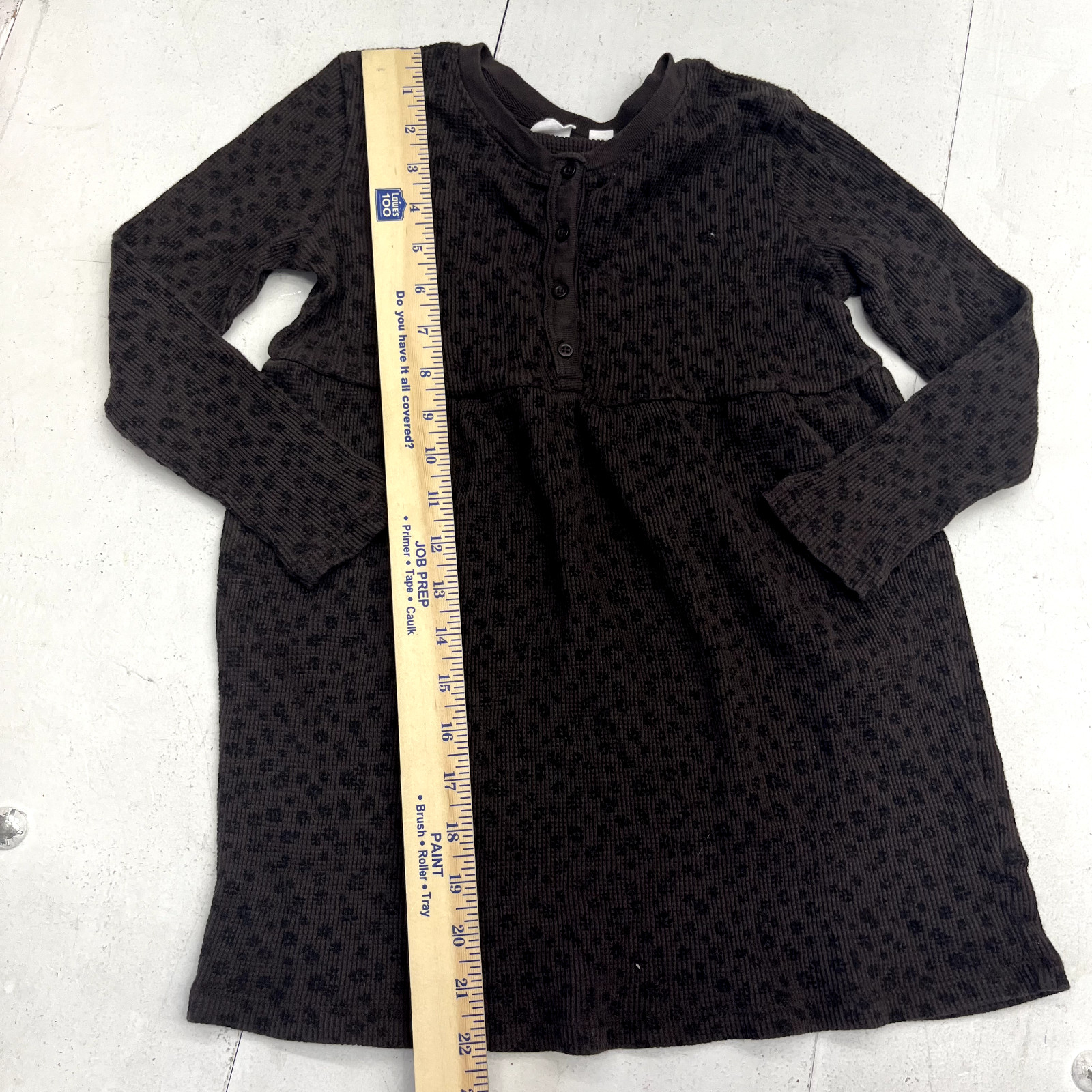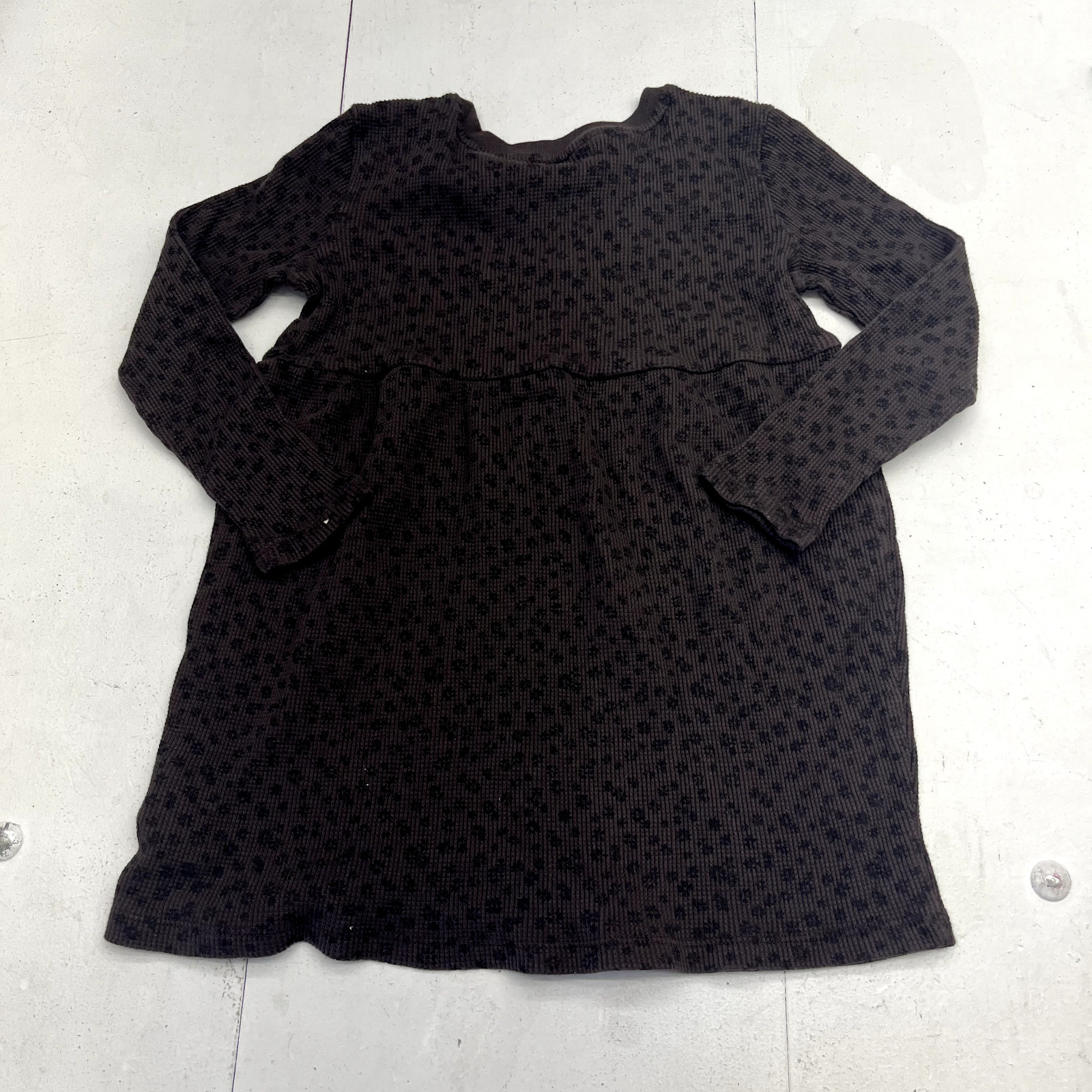 Gap Brown Floral Print Long Sleeve Waffle Knit Skater Dress Girls Size Small