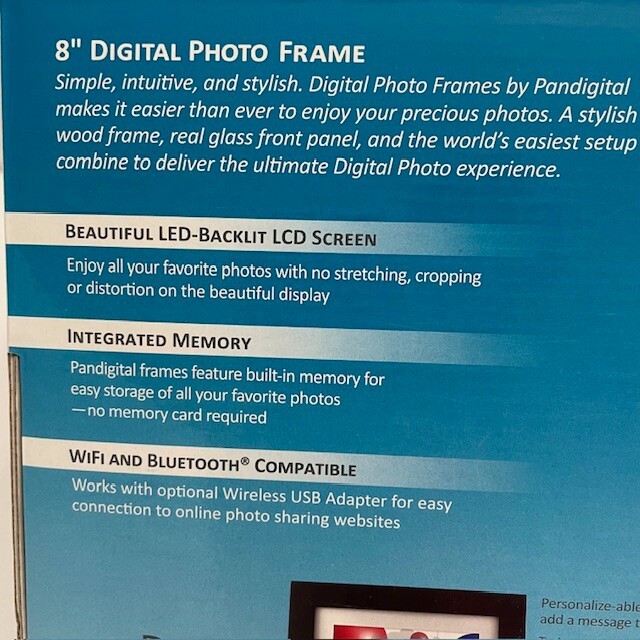 как выглядит Pandigital PAN8004W01C 8" DIGITAL PHOTO PICTURE FRAME 10,000 IMAGES - NEW IN BOX фото