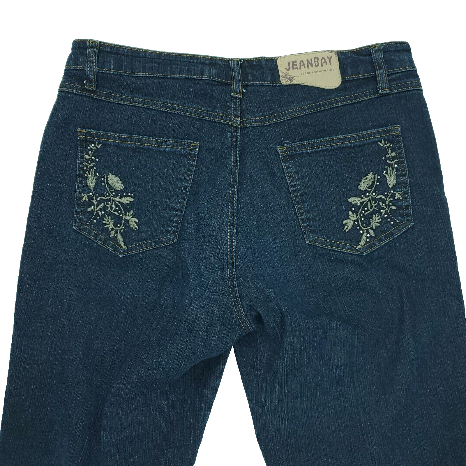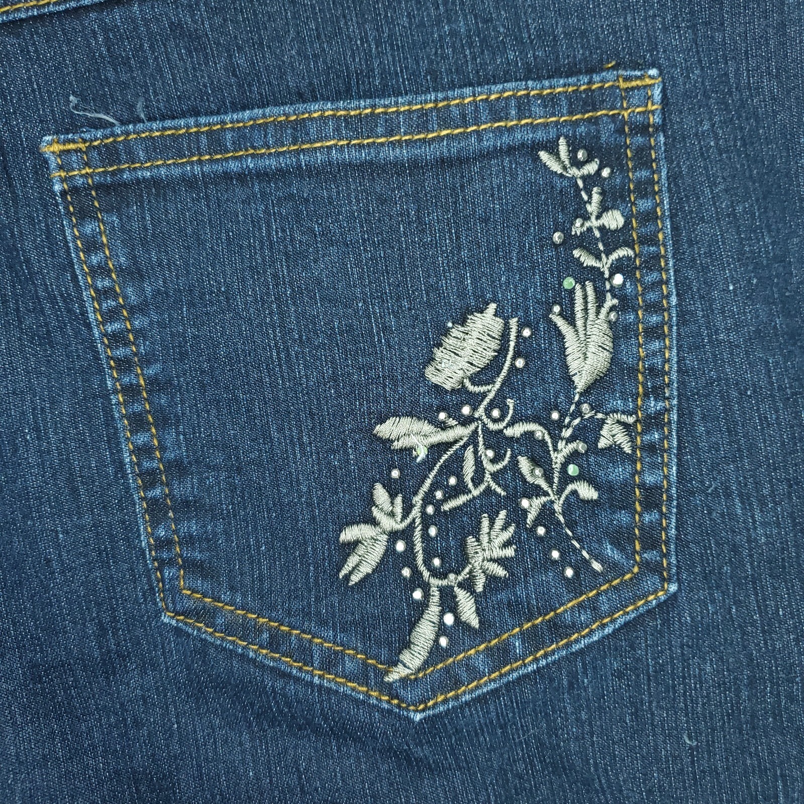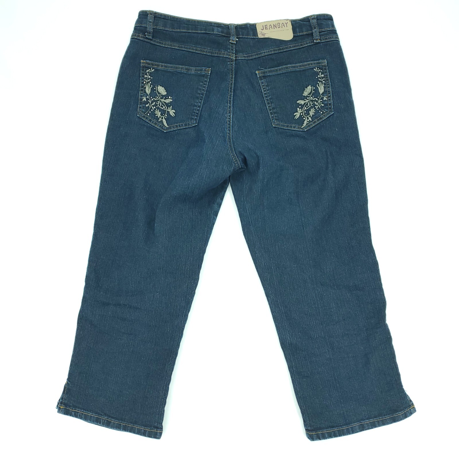 как выглядит Jeanbay Jeans Womens 8 Blue Dark Wash Rhinestones Embroidered Leg Pockets Capri фото