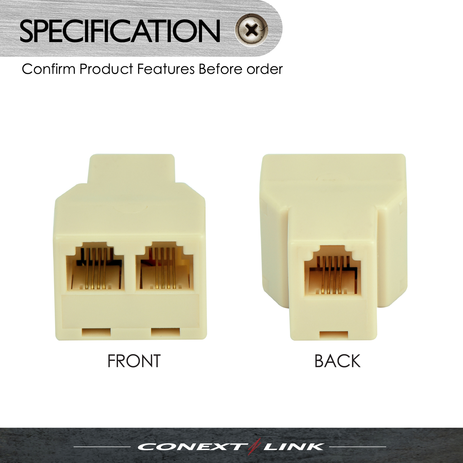 2pcs RJ11 6P4C Telephone Phone Line 1 Female to 2 Female Modular T Adapter Plug