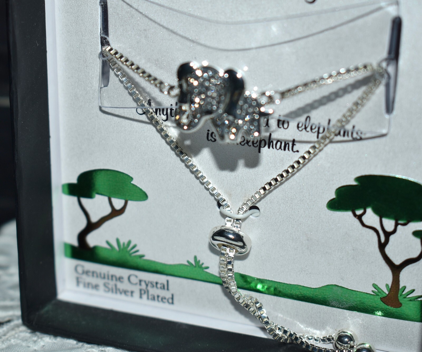Silver Plated ELEPHANT Bracelet Genuine Crystals Adjustable NEW in Box SRP 59