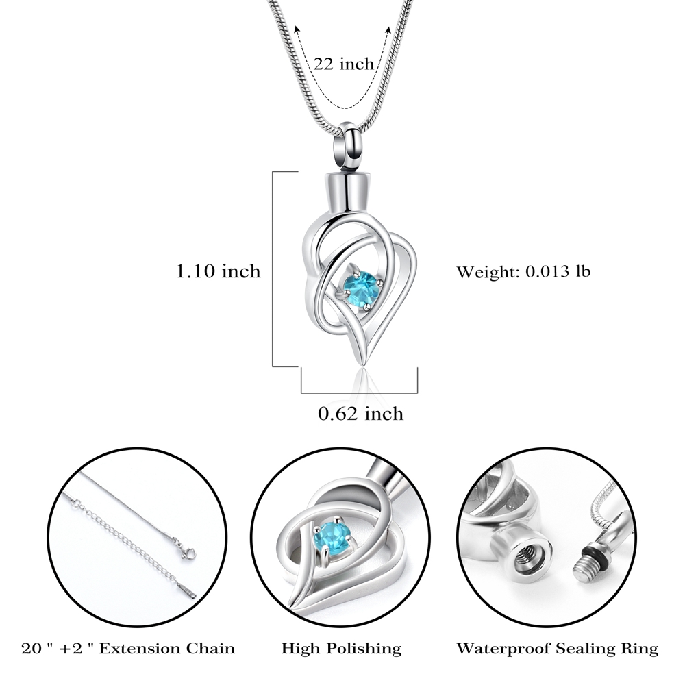Heart Urn Pendant Necklace for Cremation Ashes Keepsake Memorial Jewelry Gift
