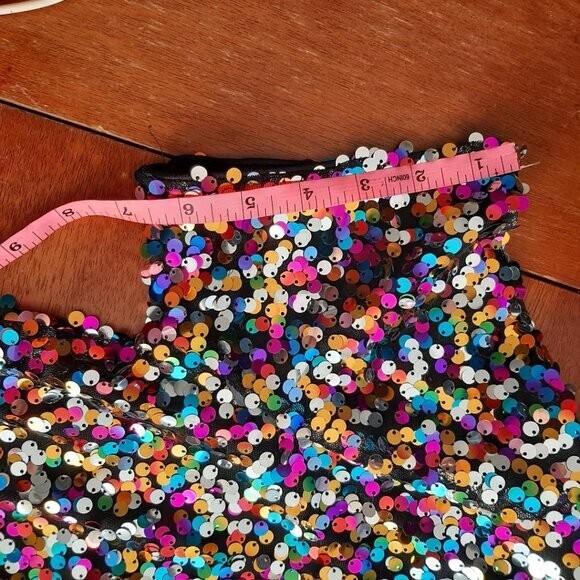 как выглядит NEW Sparkle Glitter Top Party Sequin Blouse Short Sleeve Costume MultiColor SzM фото