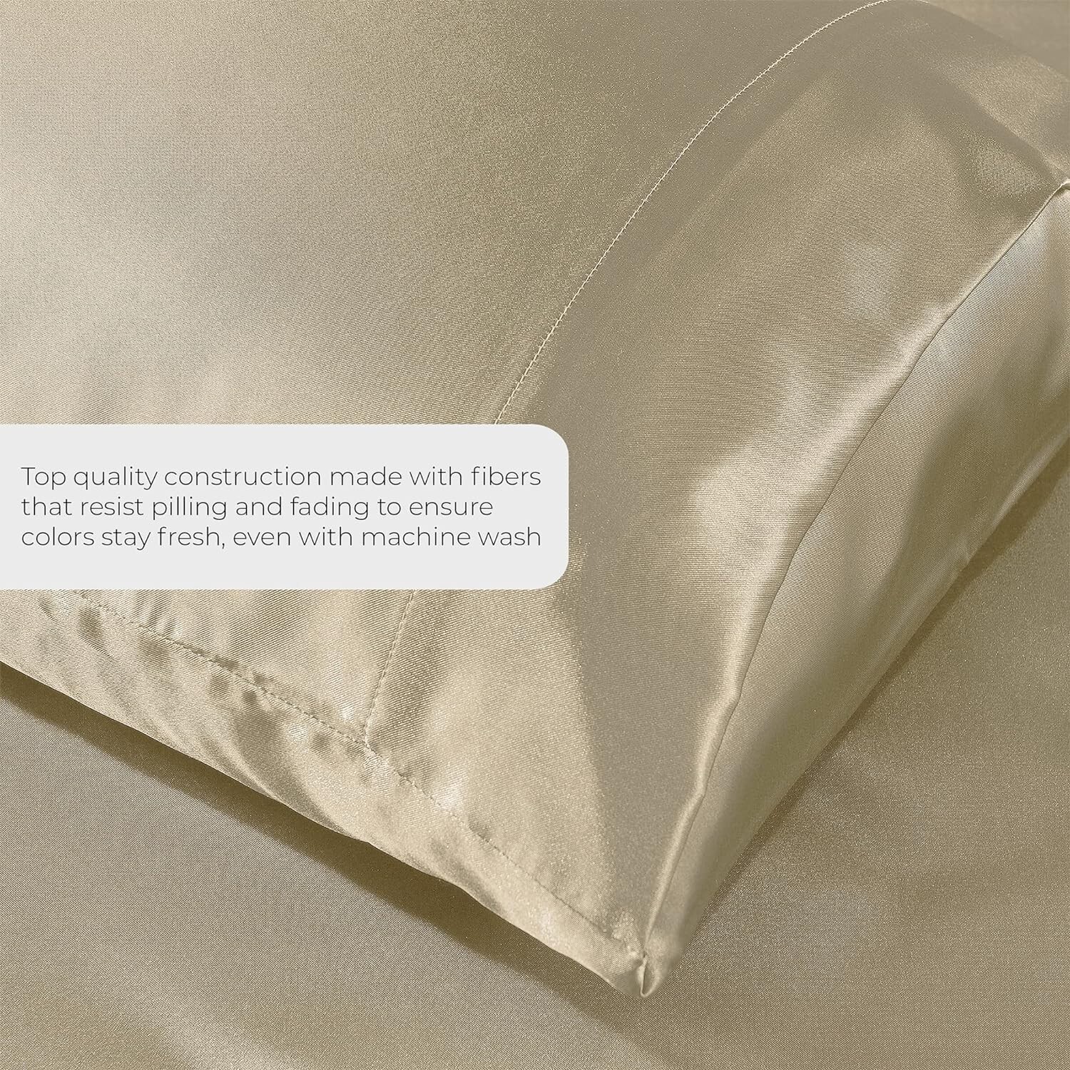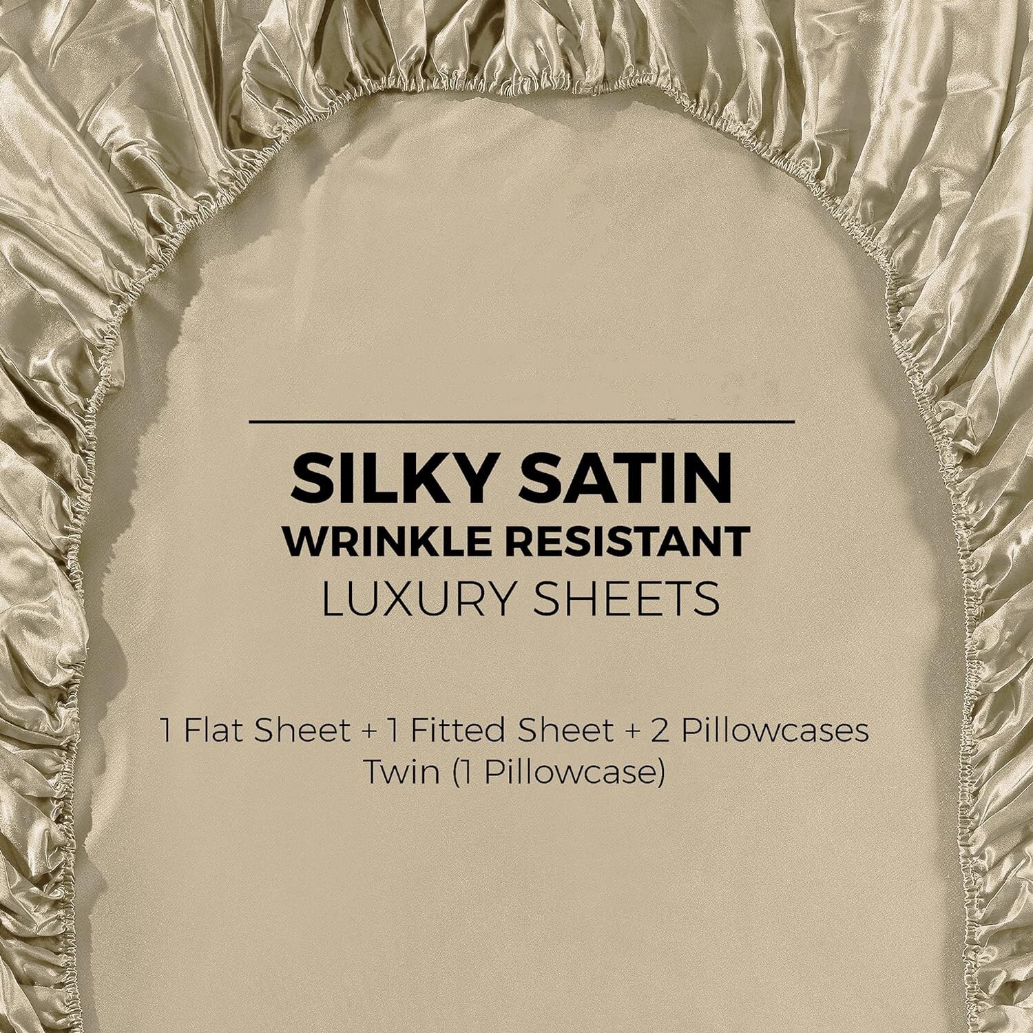 Twin Size Champagne Gold Satin Bed Sheet Set Super Soft 1800 Microfiber Wrinkle