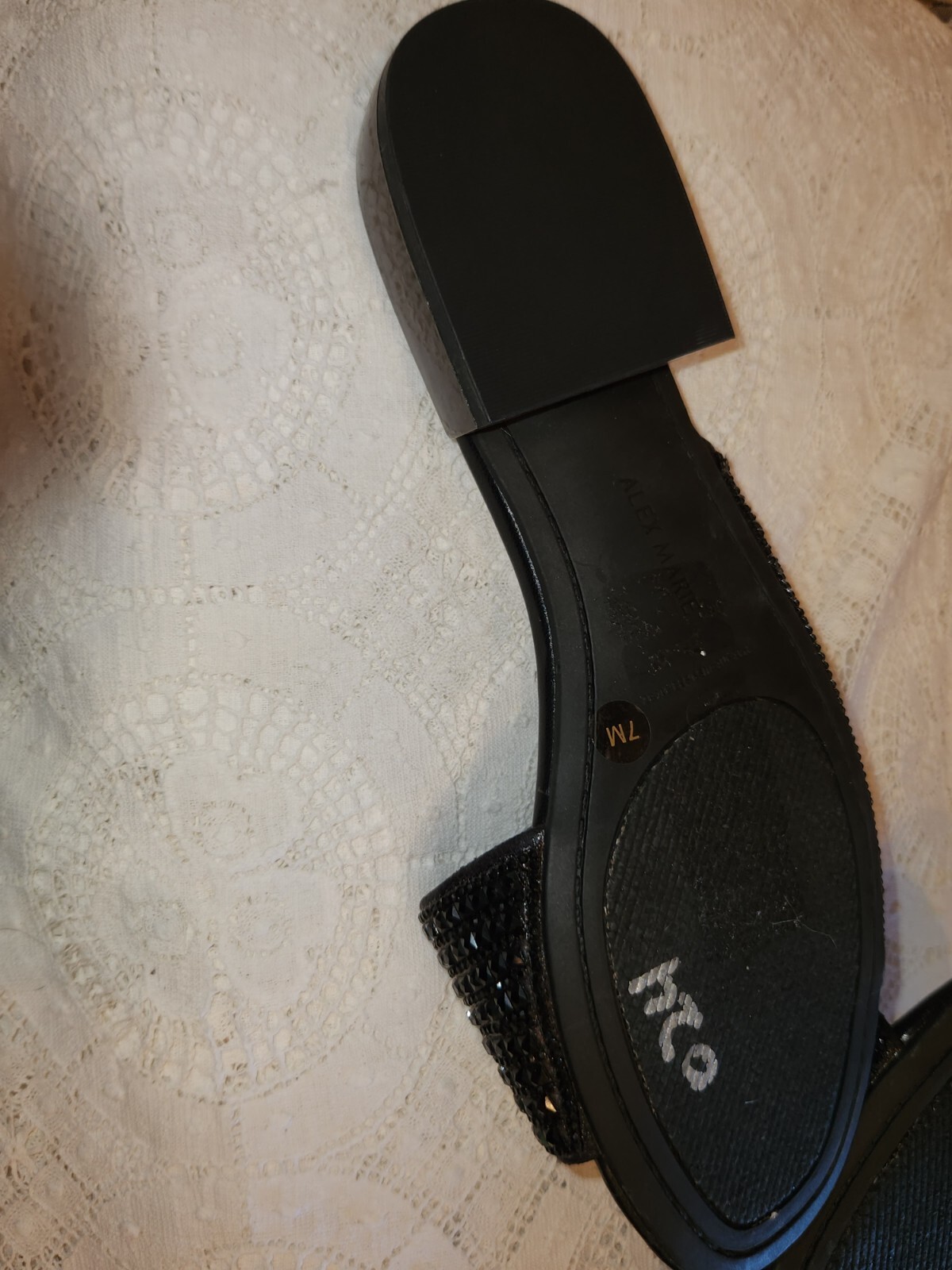 как выглядит Alex Marie Black Sequined Glittery Sandals NWOT 7M 1" Heel фото