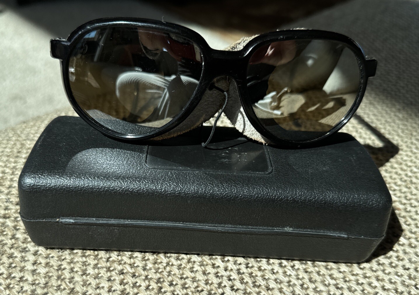 VINTAGE STYLE EYES MIRRORED SUNGLASSES W LEATHER SHIELD. FRANCE.