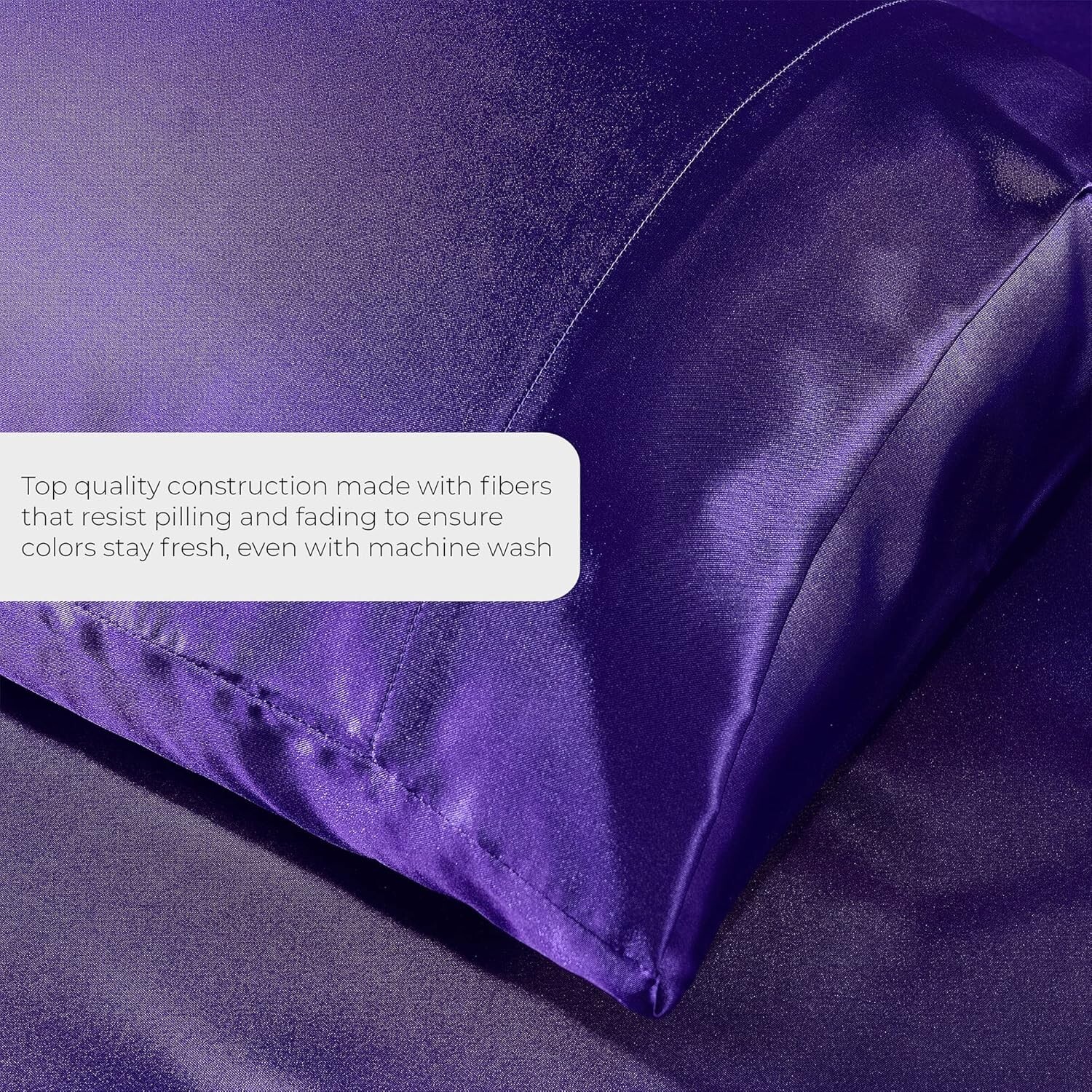 Twin Size Purple Satin Bed Sheet Set Extra Soft 1800 Microfiber Wrinkle Fade