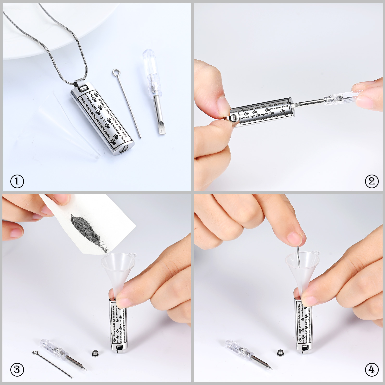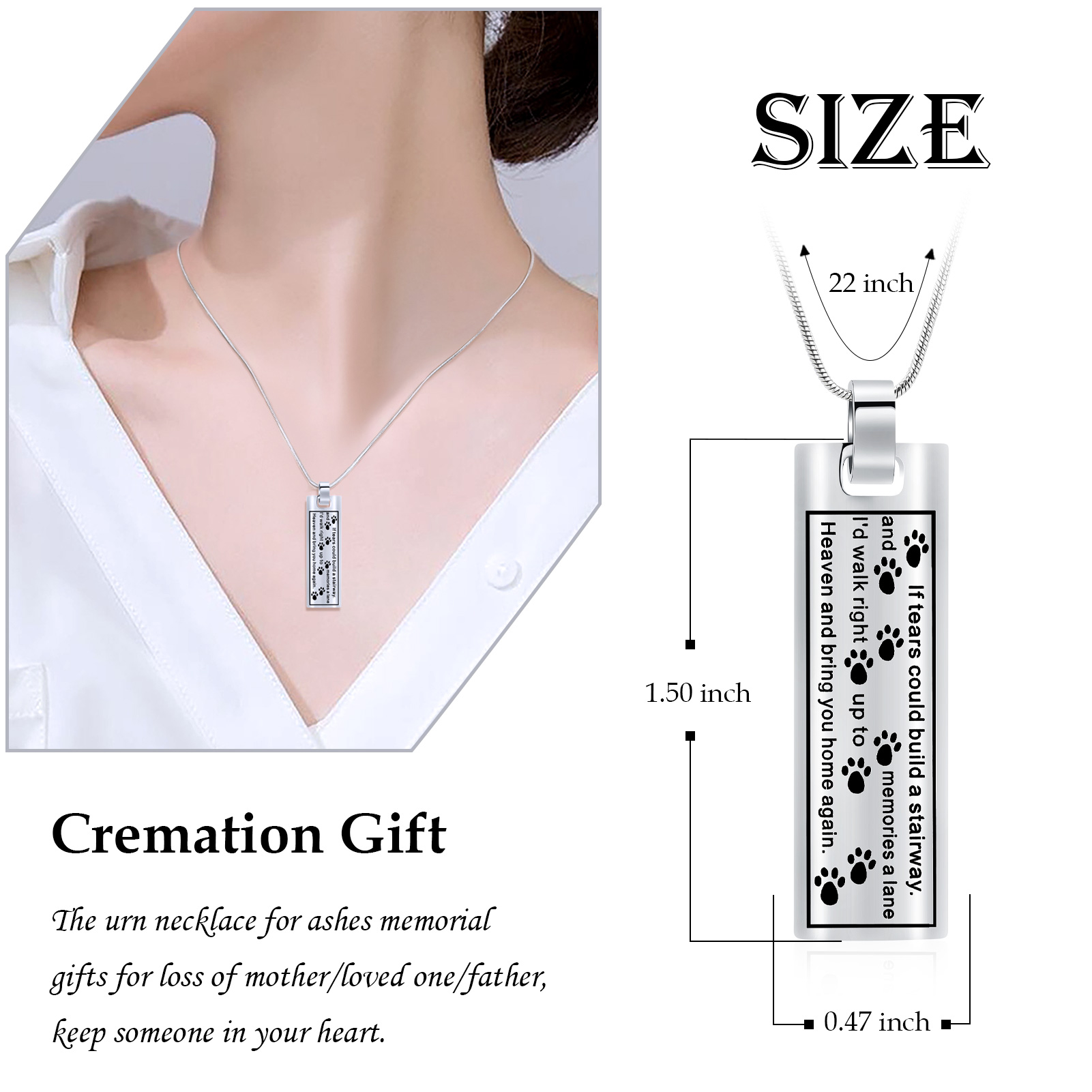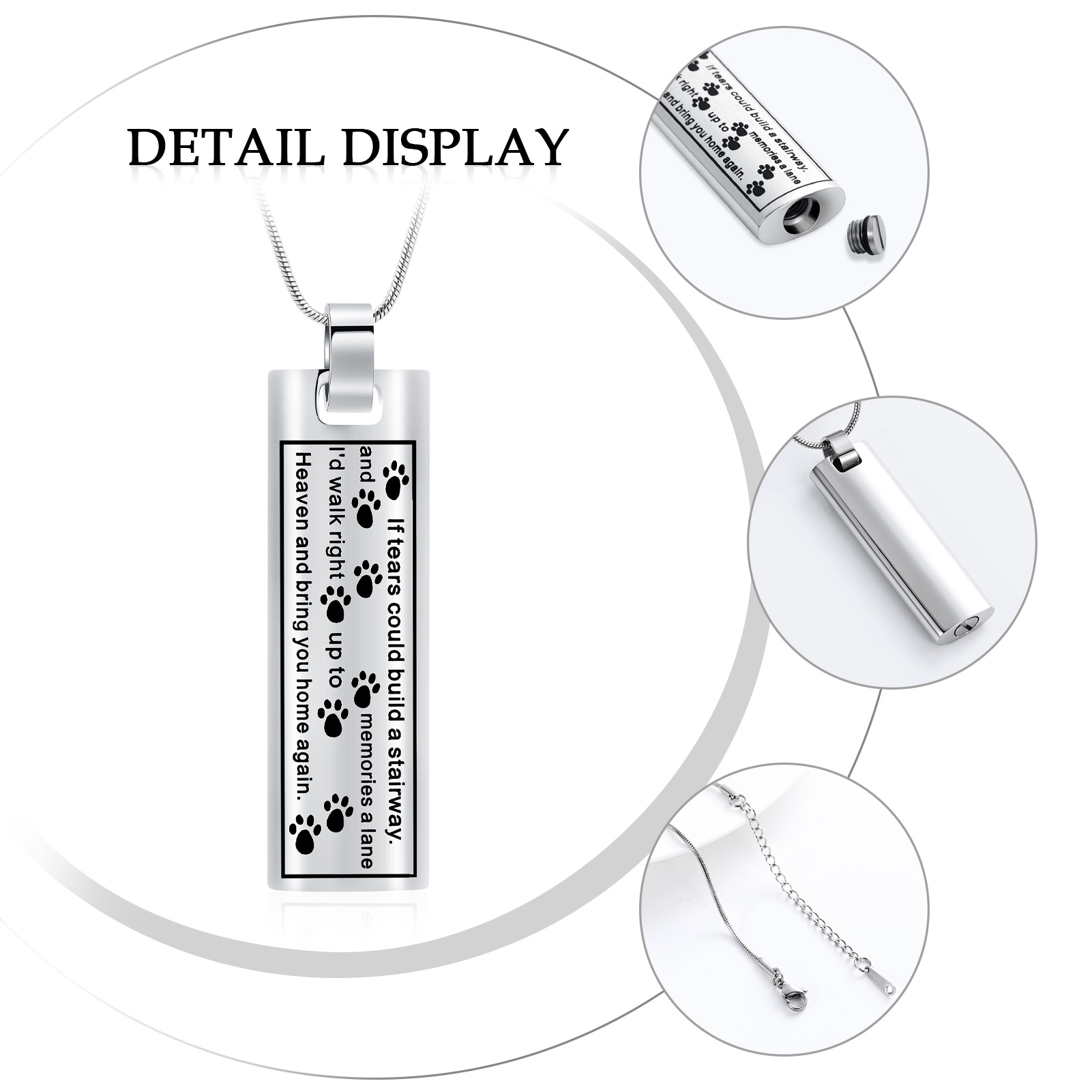 Paw Print Square Urn Pendant Pet Memory Necklace for Dog Cat Cremation Ashes
