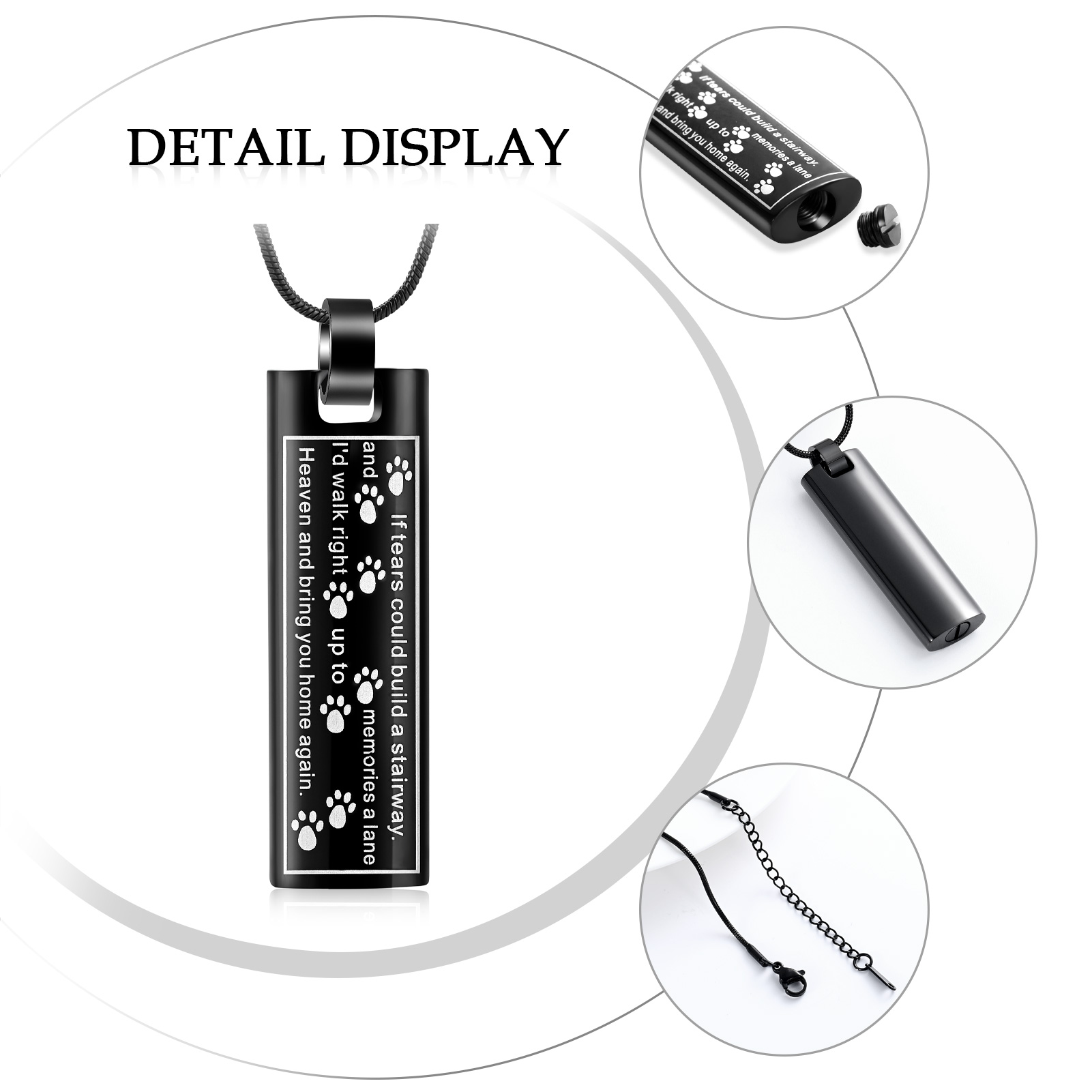 Paw Print Square Urn Pendant Pet Memory Necklace for Dog Cat Cremation Ashes