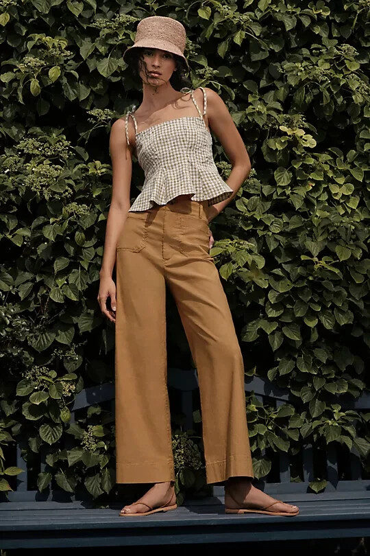как выглядит Anthropologie The Colette Wide Leg Crop Pants Trousers Honey Brown Size 32 NEW фото