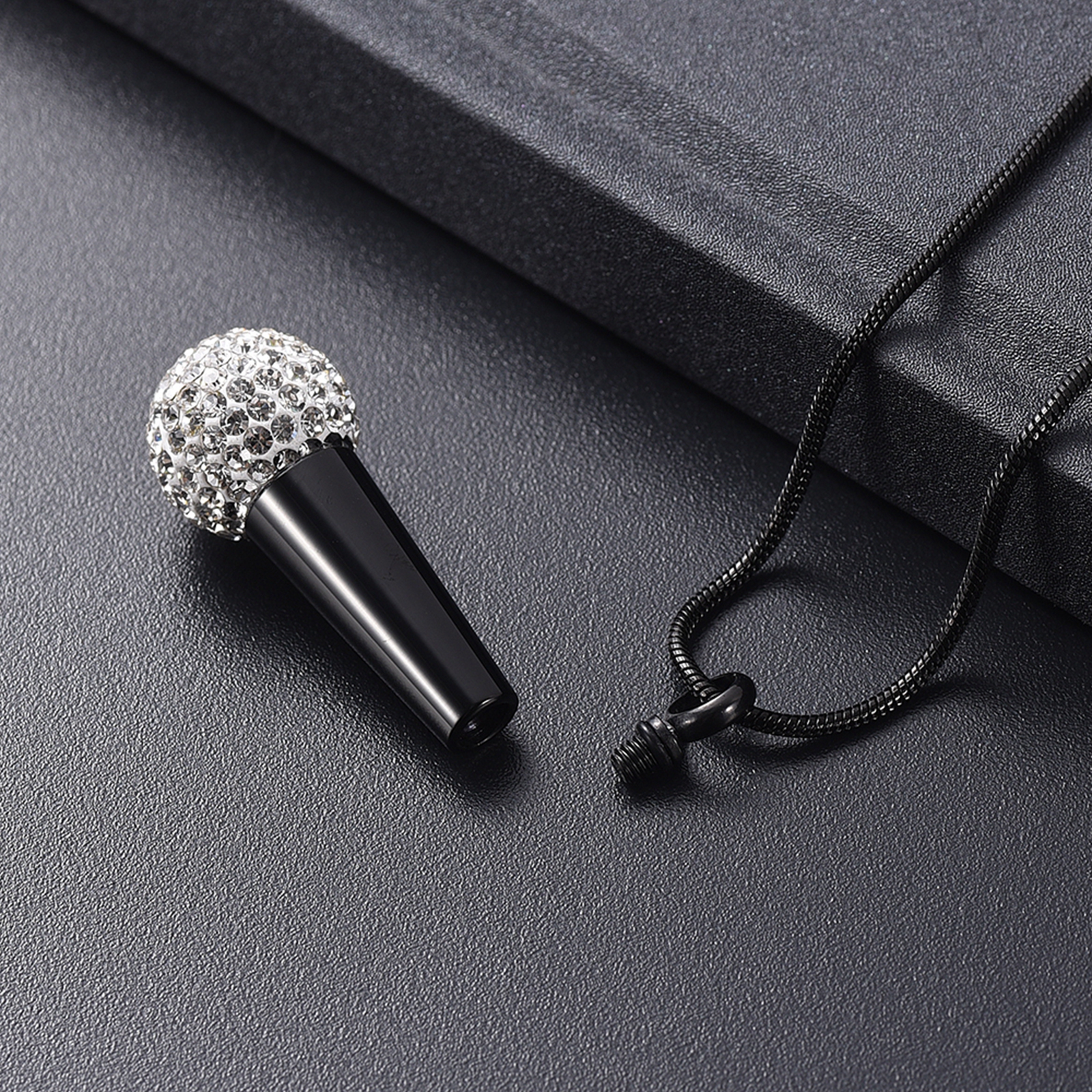 Stainless Steel Microphone Urn Pendant Ashes Keepsake Memory Necklace Jewelry