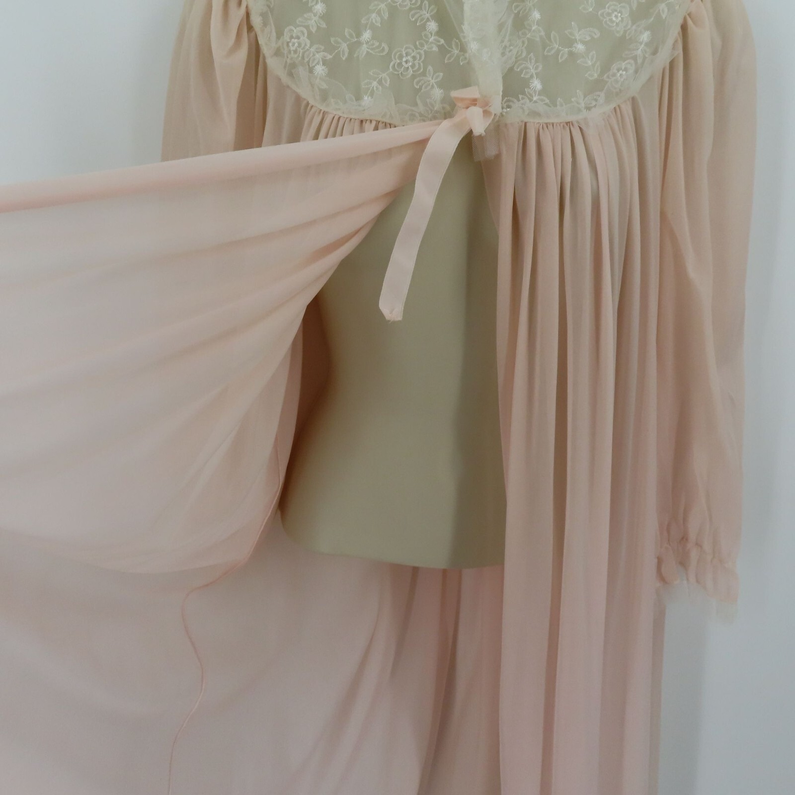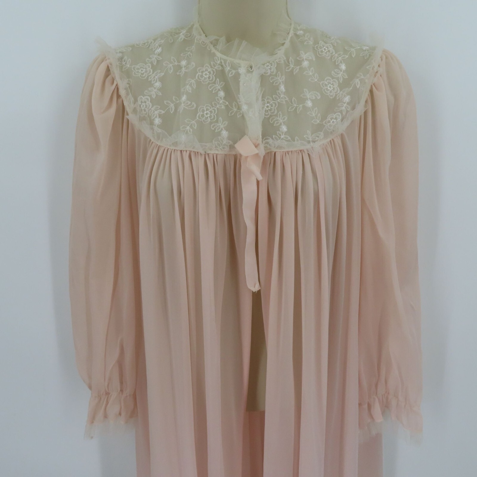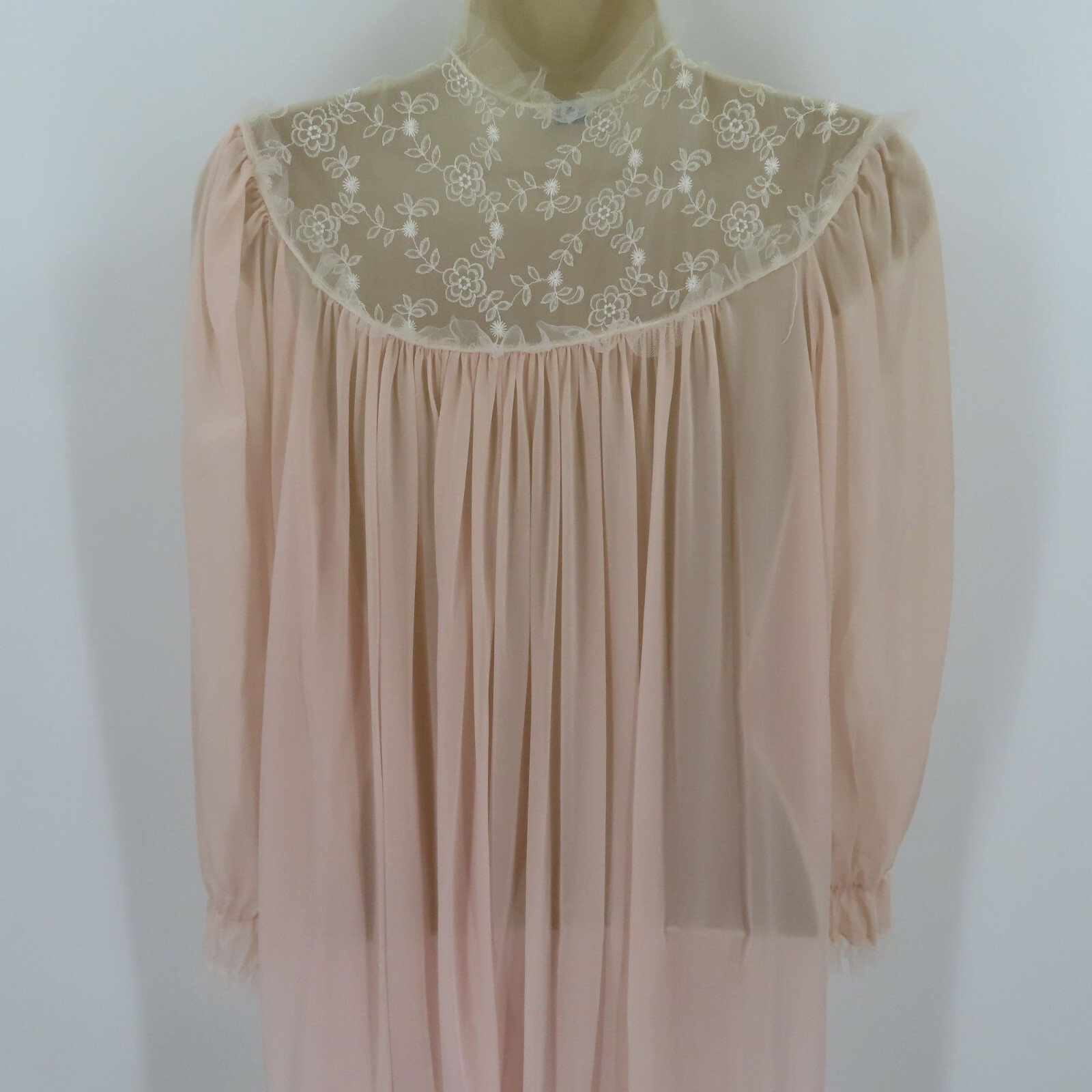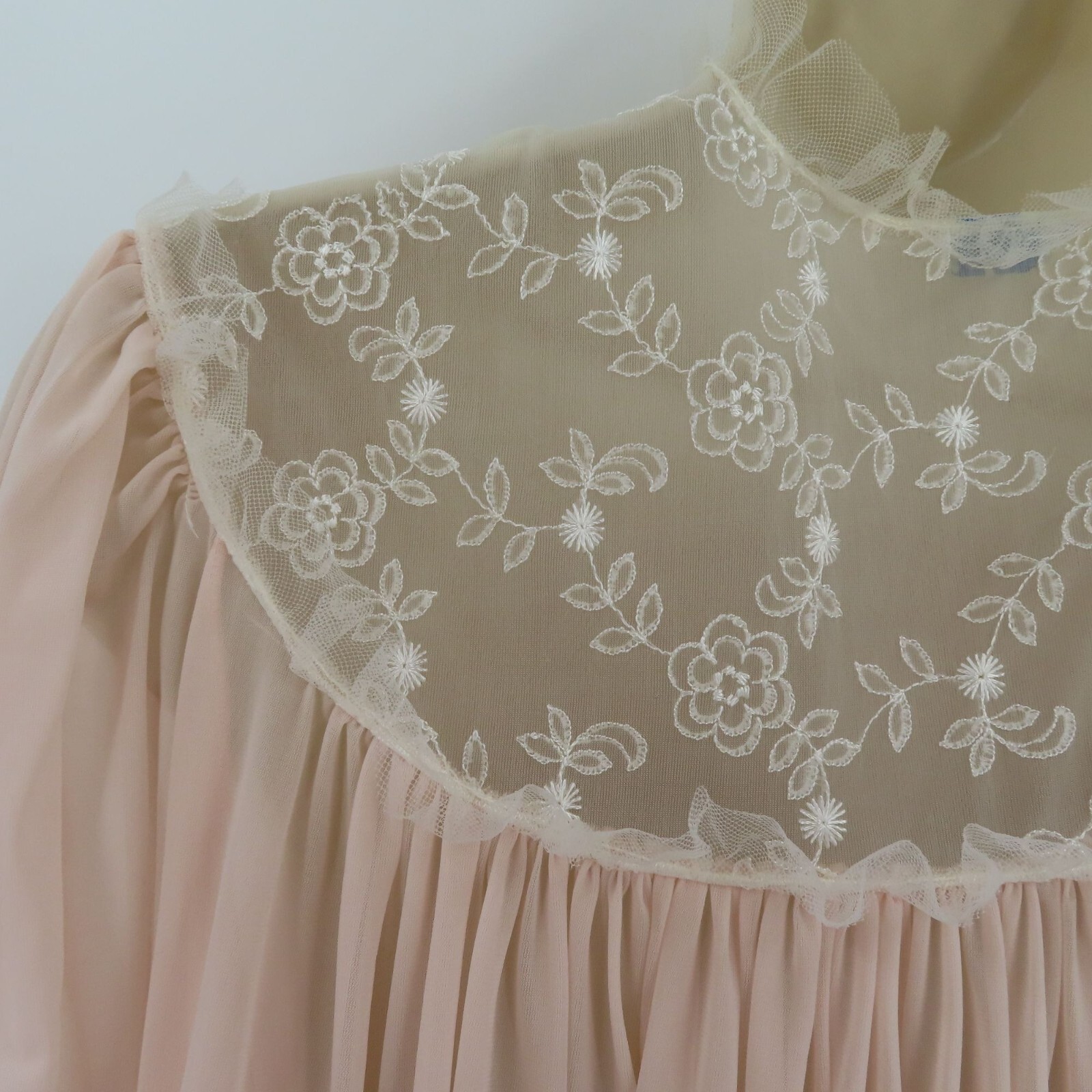 как выглядит Lady Lenora Womens 12 Peignoir Pink White Embroirdered Flowers Tulle Trim VTG фото