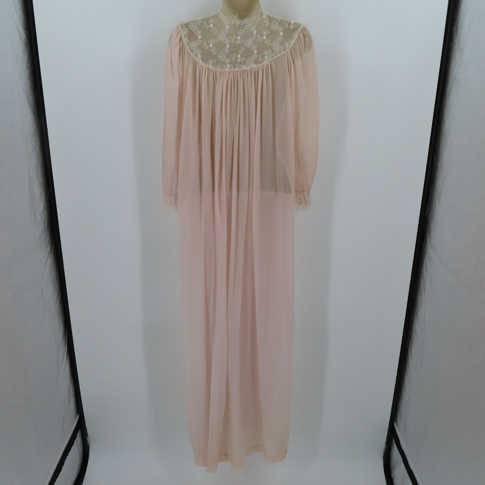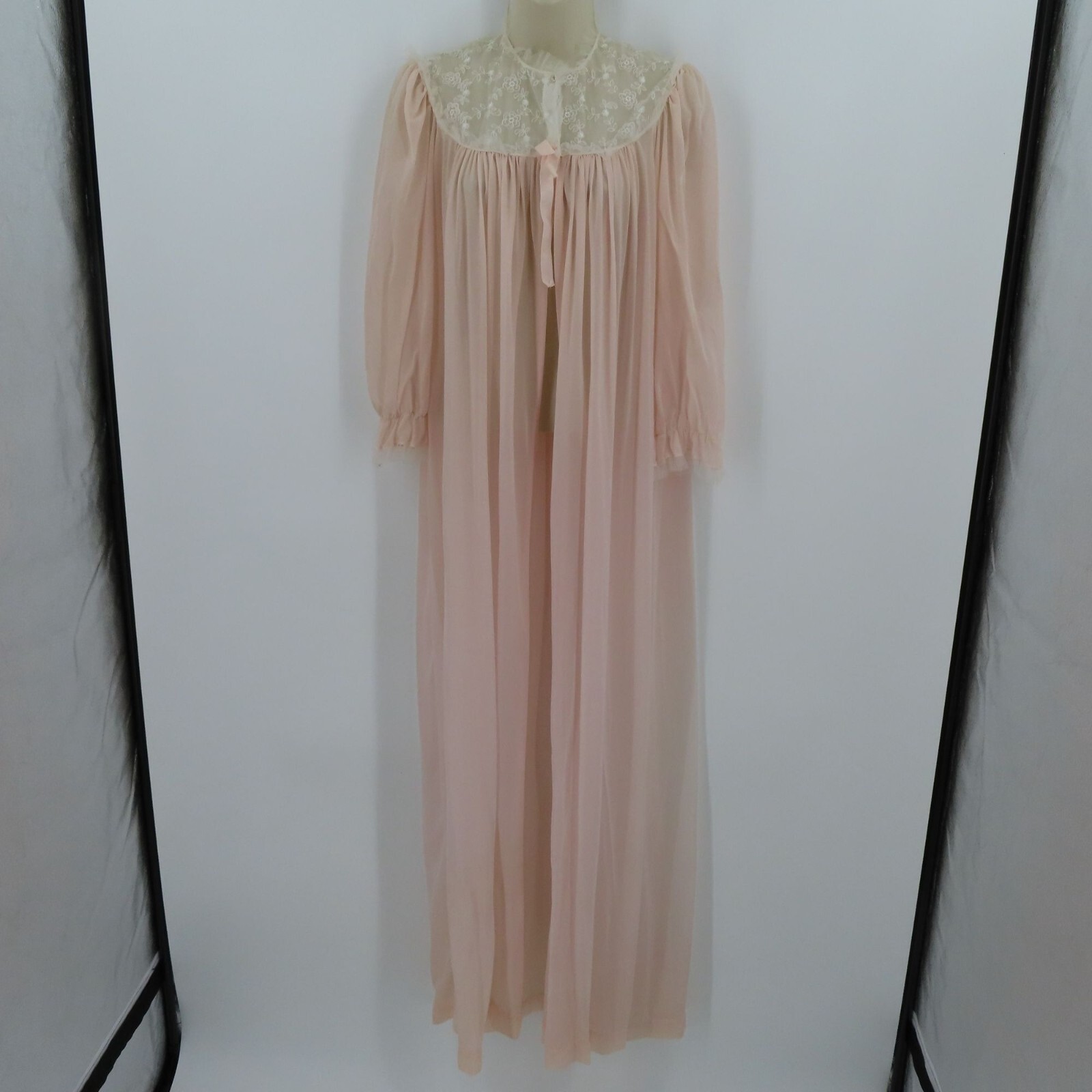 Lady Lenora Womens 12 Peignoir Pink White Embroirdered Flowers Tulle Trim VTG