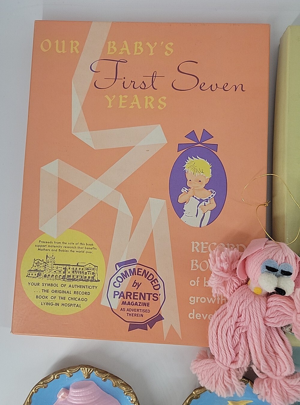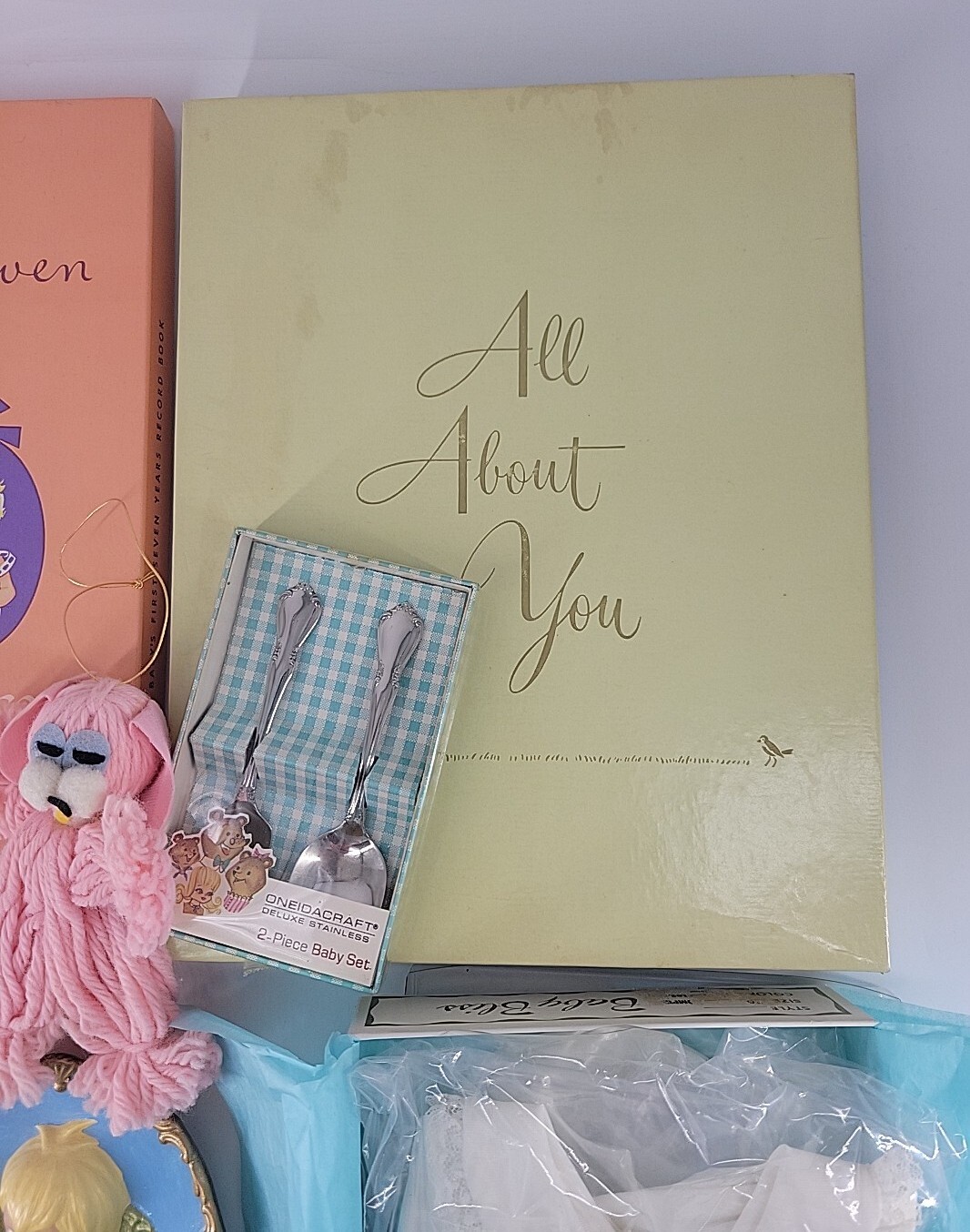 Vintage Lot Nursery Baby Items Baby Book Diaper Pins Decor Oneidacraft Utensils