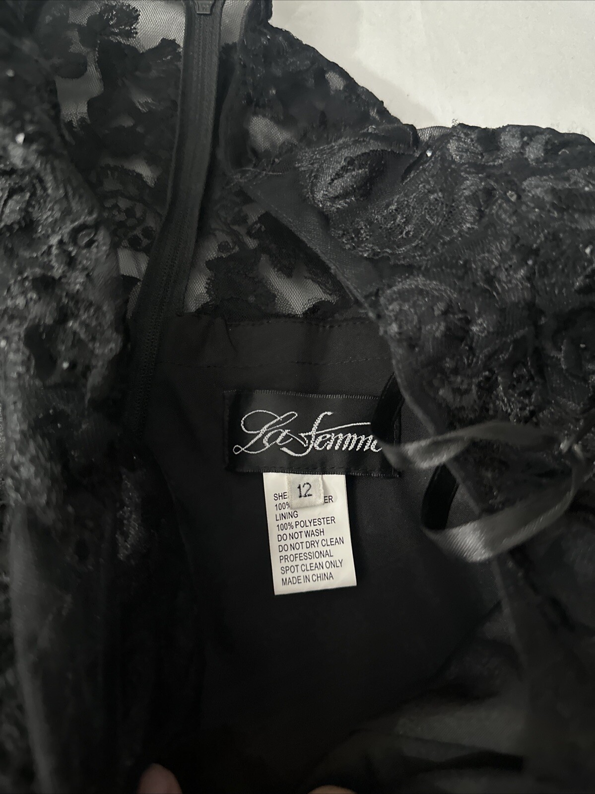 NEW 469 La Femme 12 Embroidered Illusion Neck A line Gown in Black J765