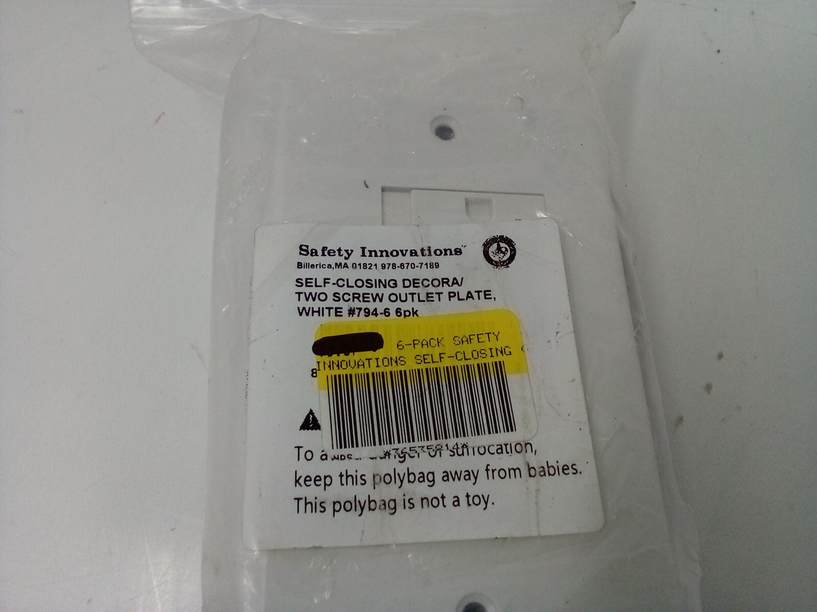 как выглядит 6-Pack Safety Innovations Self-Closing Decora/Two Screw Outlet Plate,White794-6 фото