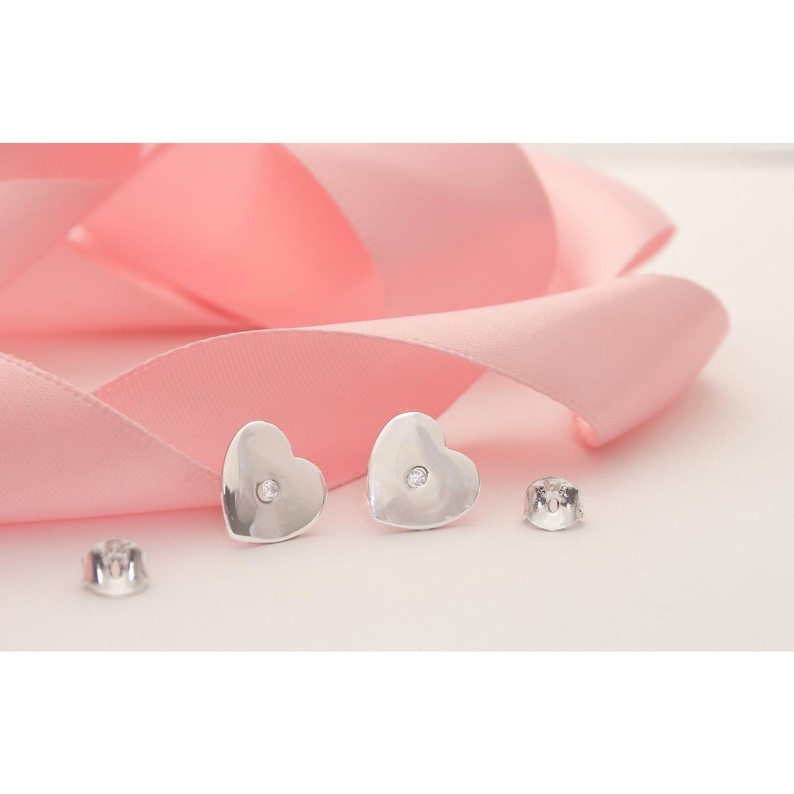 как выглядит Real Sterling Silver Heart Earrings CZ Stones, Hypo Allergenic, Stamped 925 фото