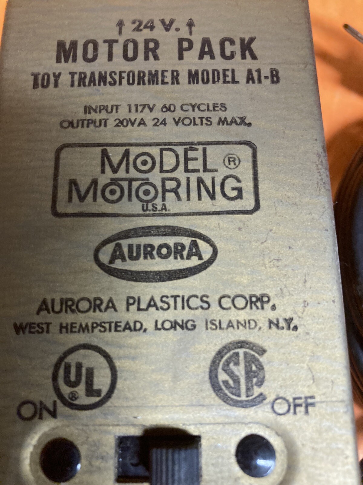 как выглядит Aurora Model Motoring 24V Toy Transformer Power Pack Supply Model A1-B фото