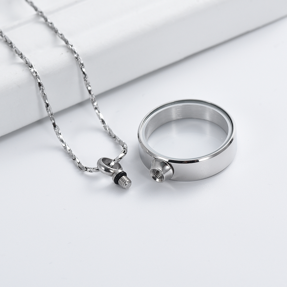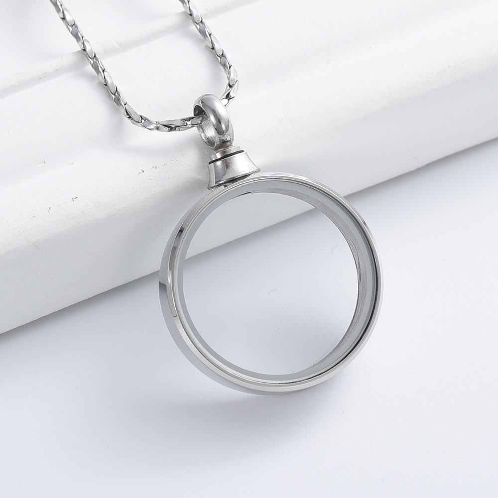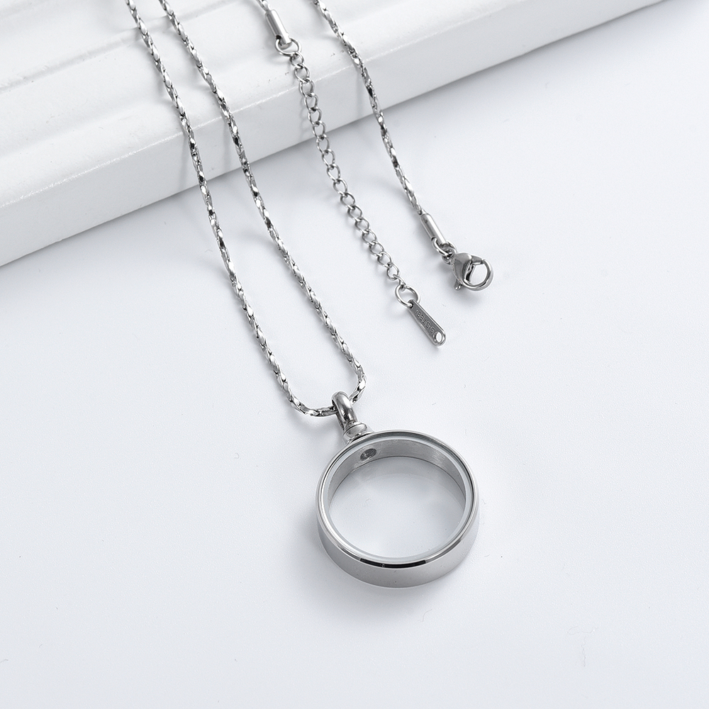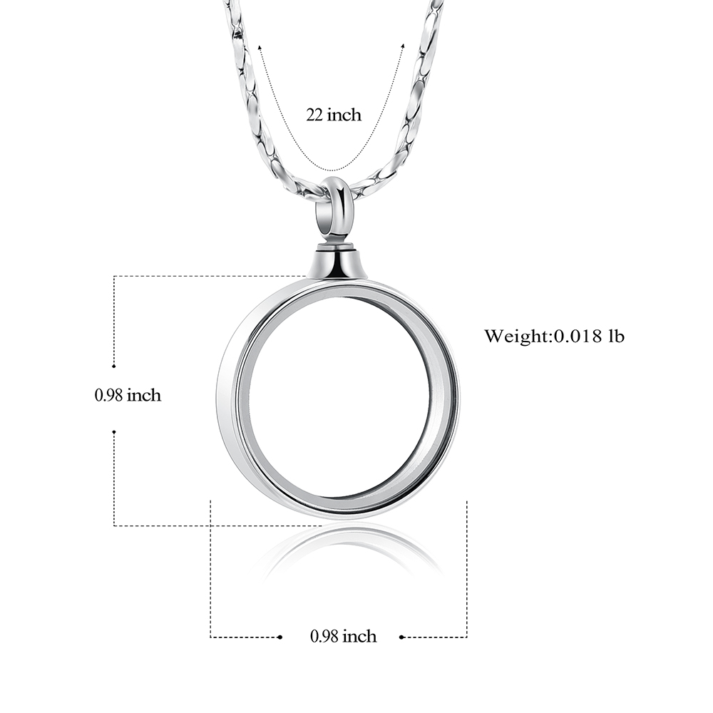 Clear Glass Circle Urn Pendant Necklace for Ashes Liquid Sand Hair Keepsake Gift