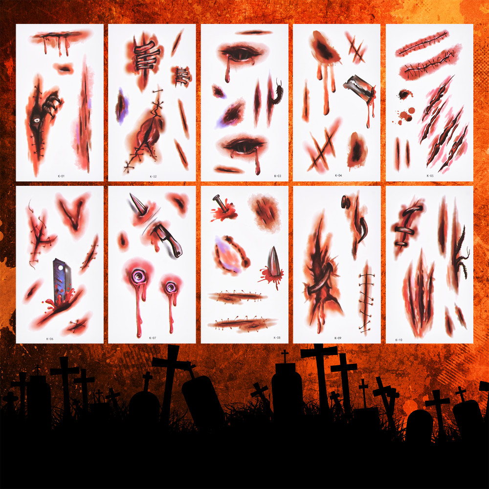 20 Types Creepy Tattoo Stickers Fake Scar Simulation Stickers Fake Wound Sticker