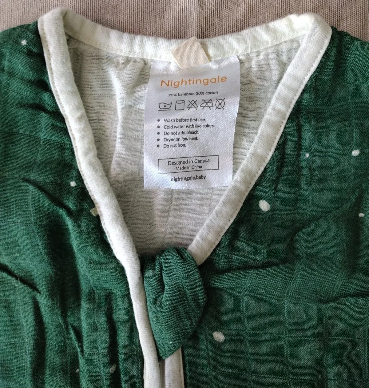 как выглядит Nightingale Muslin Bamboo Baby Sleeping Bag Sleep Sack Medium Green White Dots фото