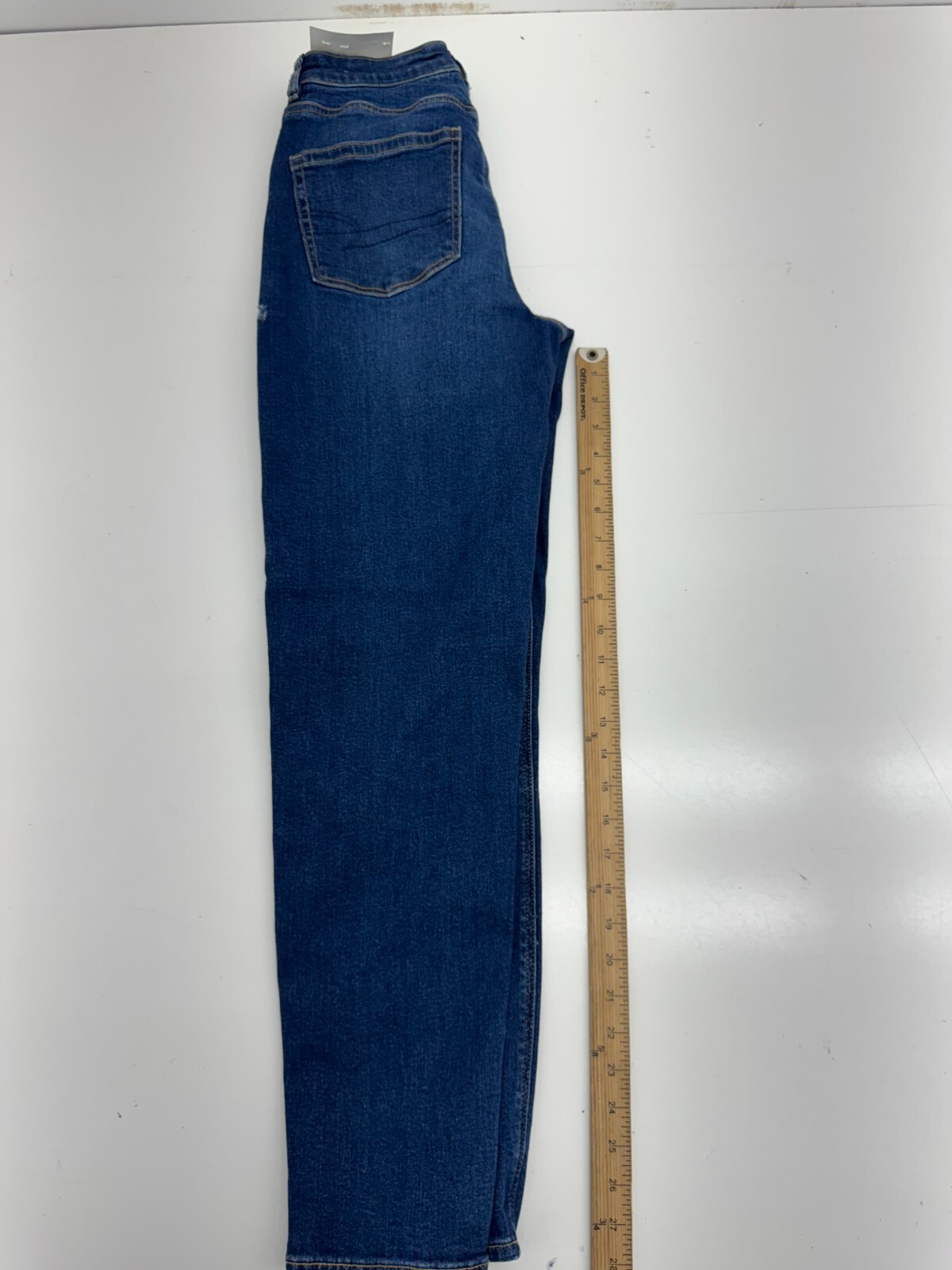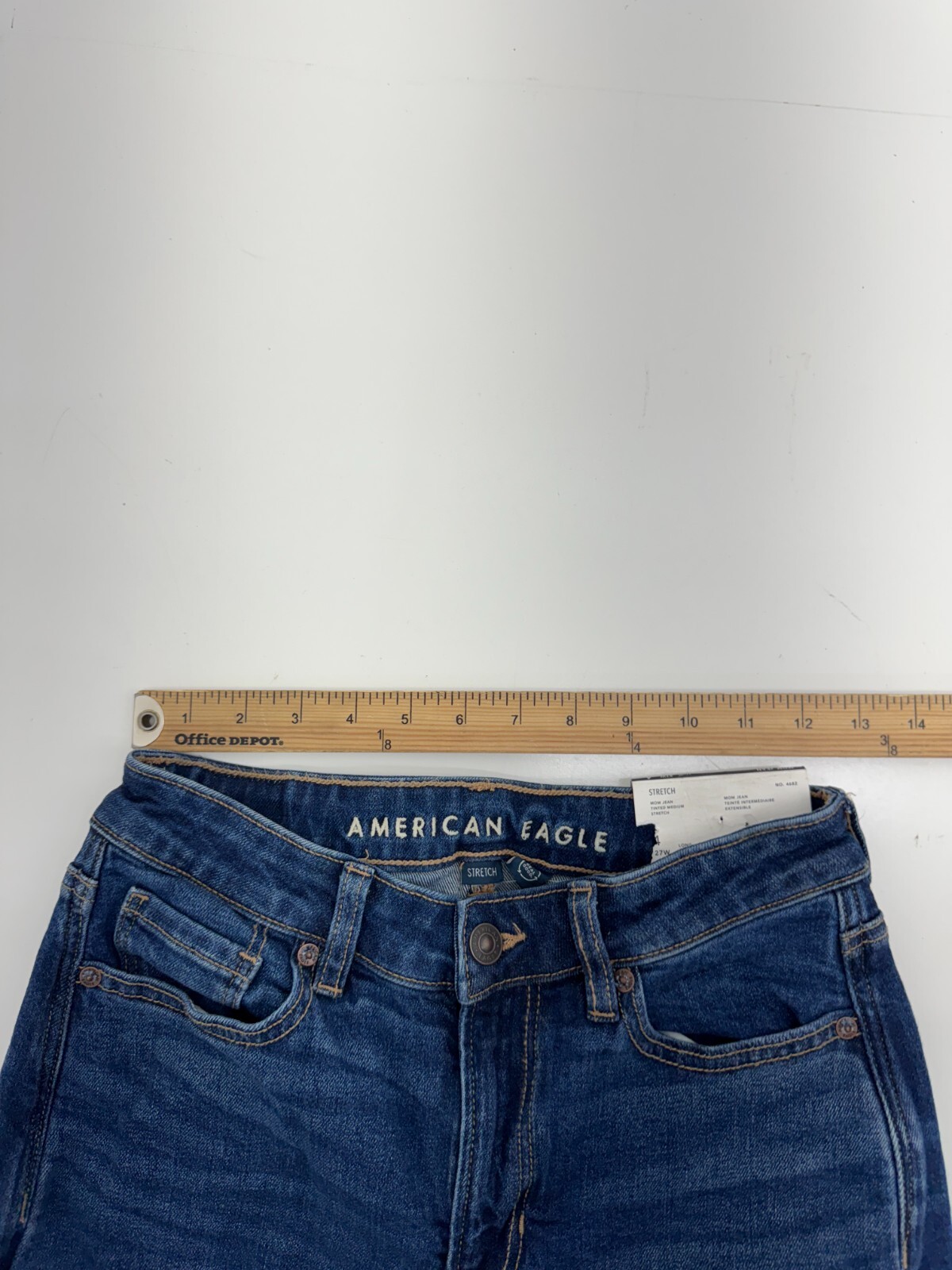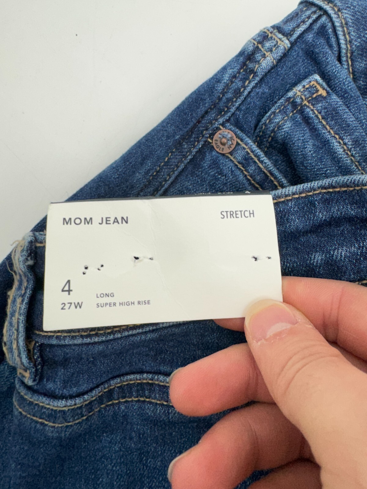 как выглядит American Eagle Blue Denim Stretch Super High Rise Mom Jeans Womens Size 4 фото