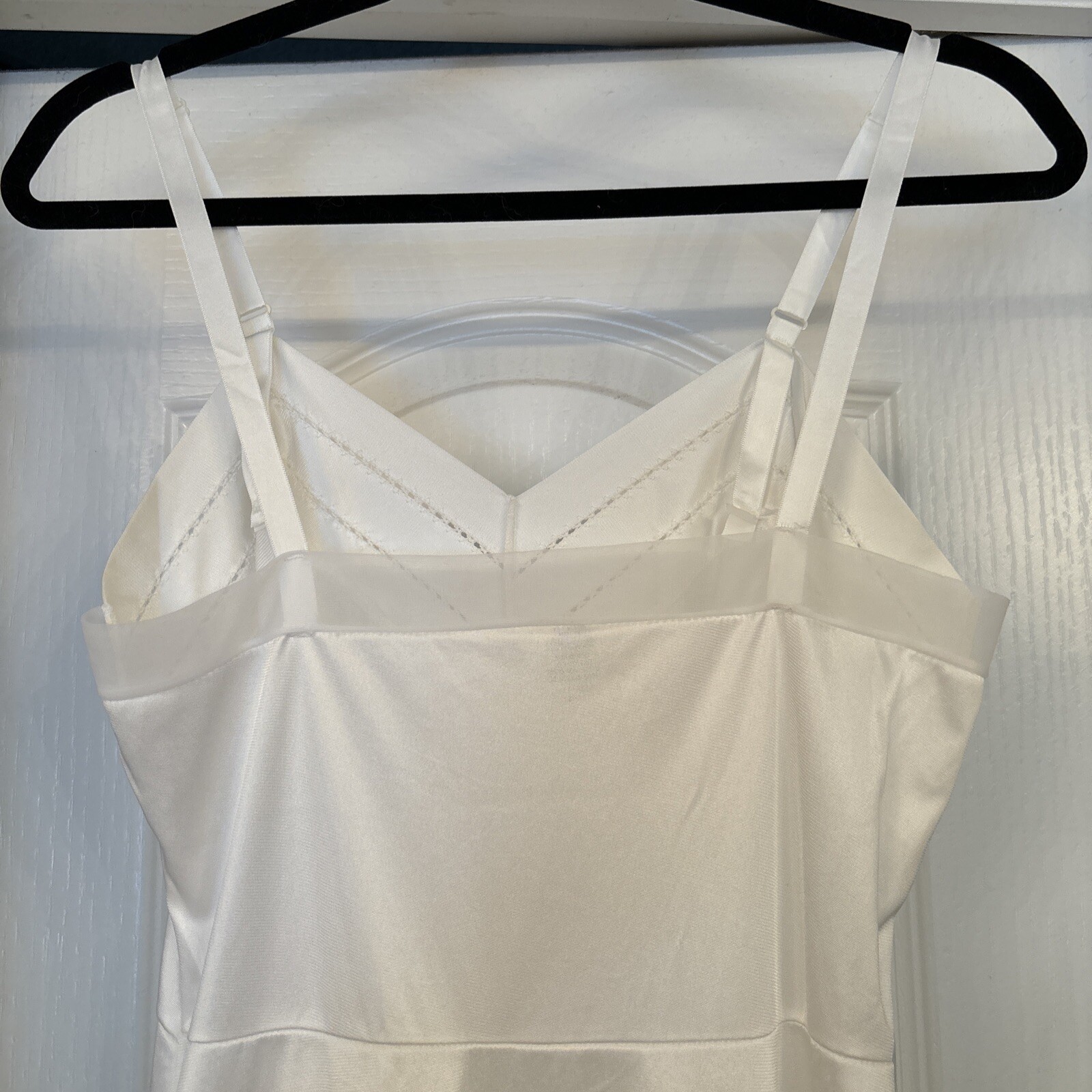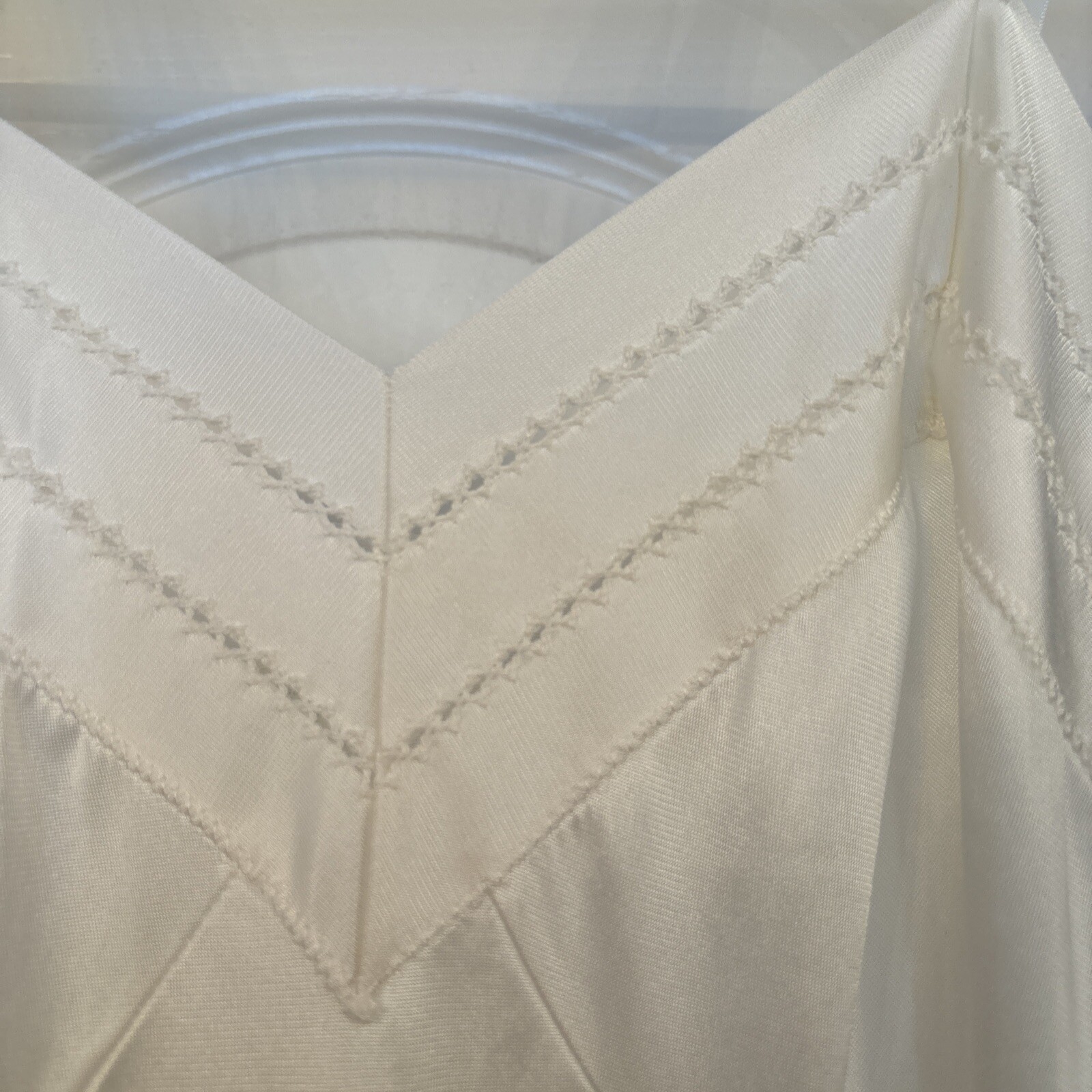 как выглядит Vintage Velrose Full Slip Ivory Sz 32 Made In USA Nylon Satin Embroidered Trim фото