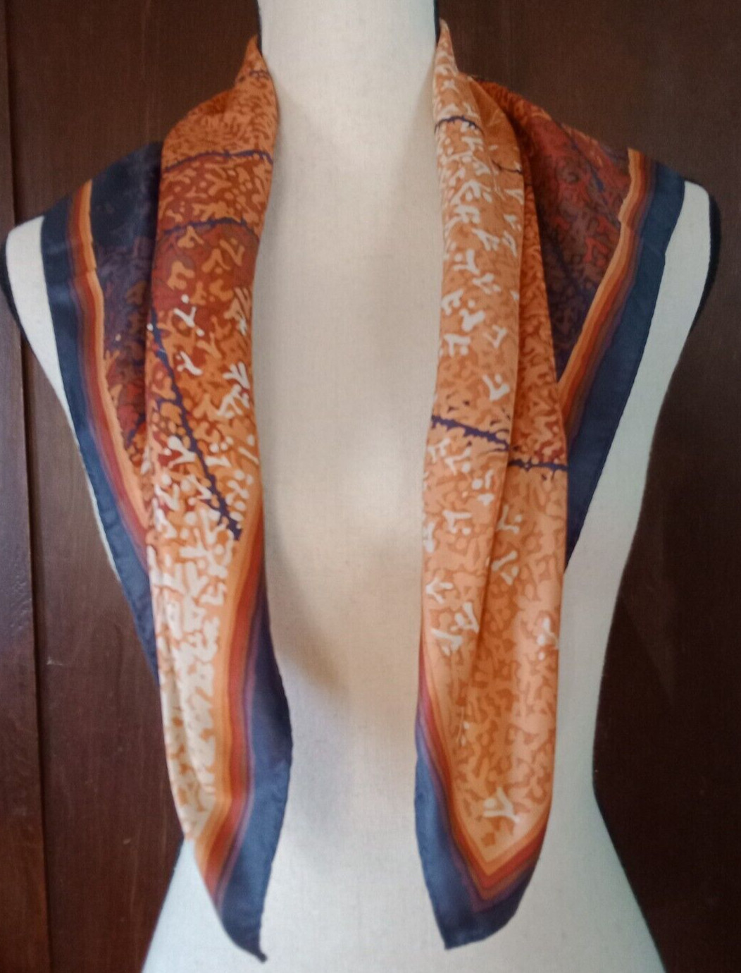 как выглядит Vintage Navy Blue Orange 26" Square Scarf Abstract Asymmetrical Pattern фото