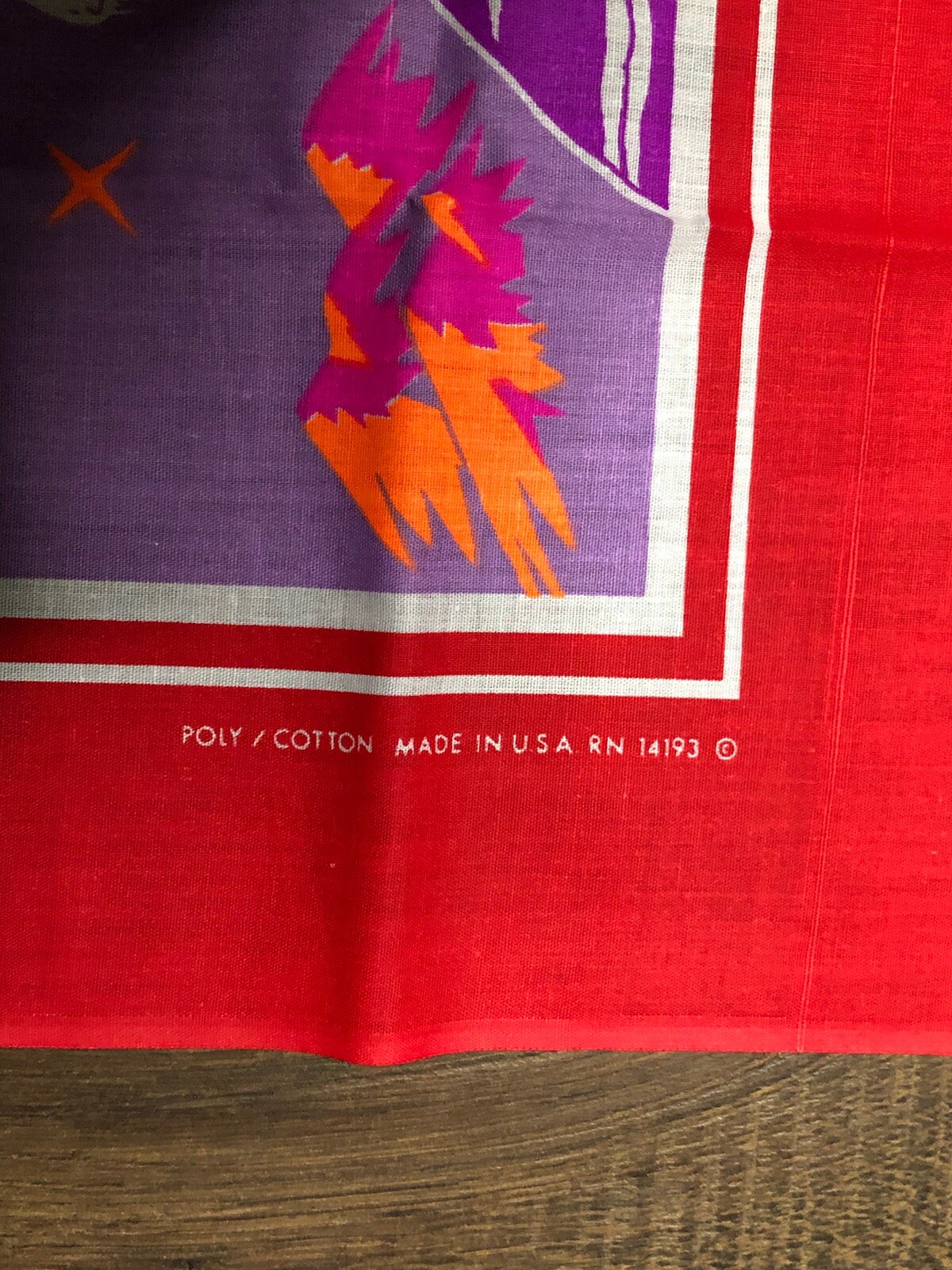 как выглядит Vintage 1980s RN 14193 Square Cotton Handkerchief Rainbow Unicorn Print фото