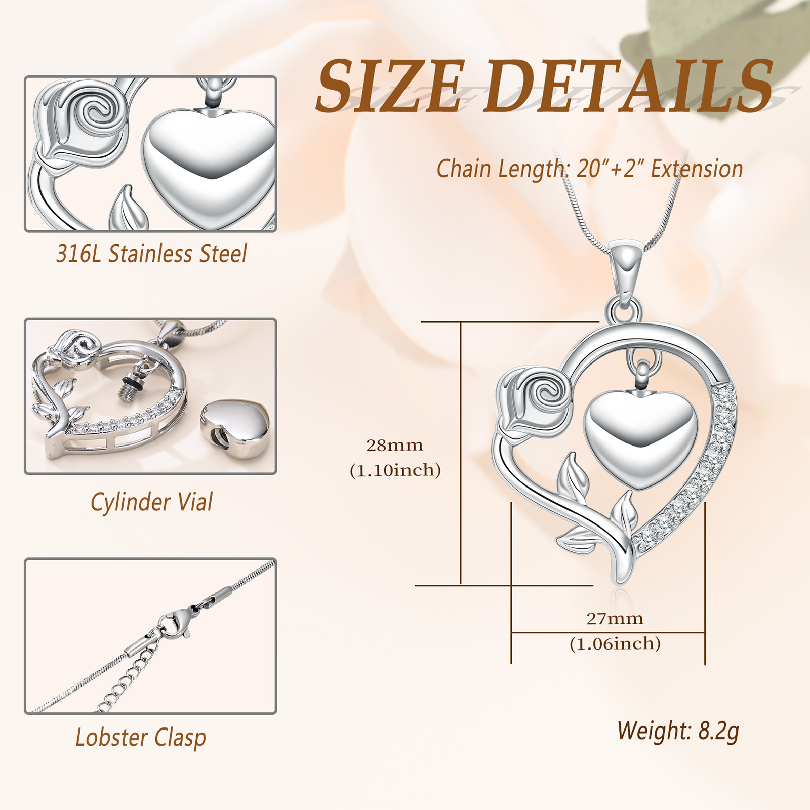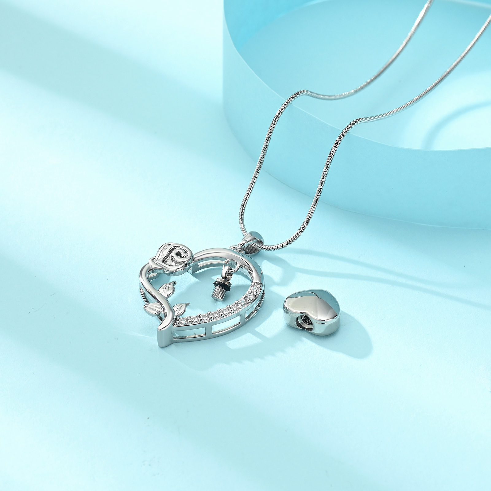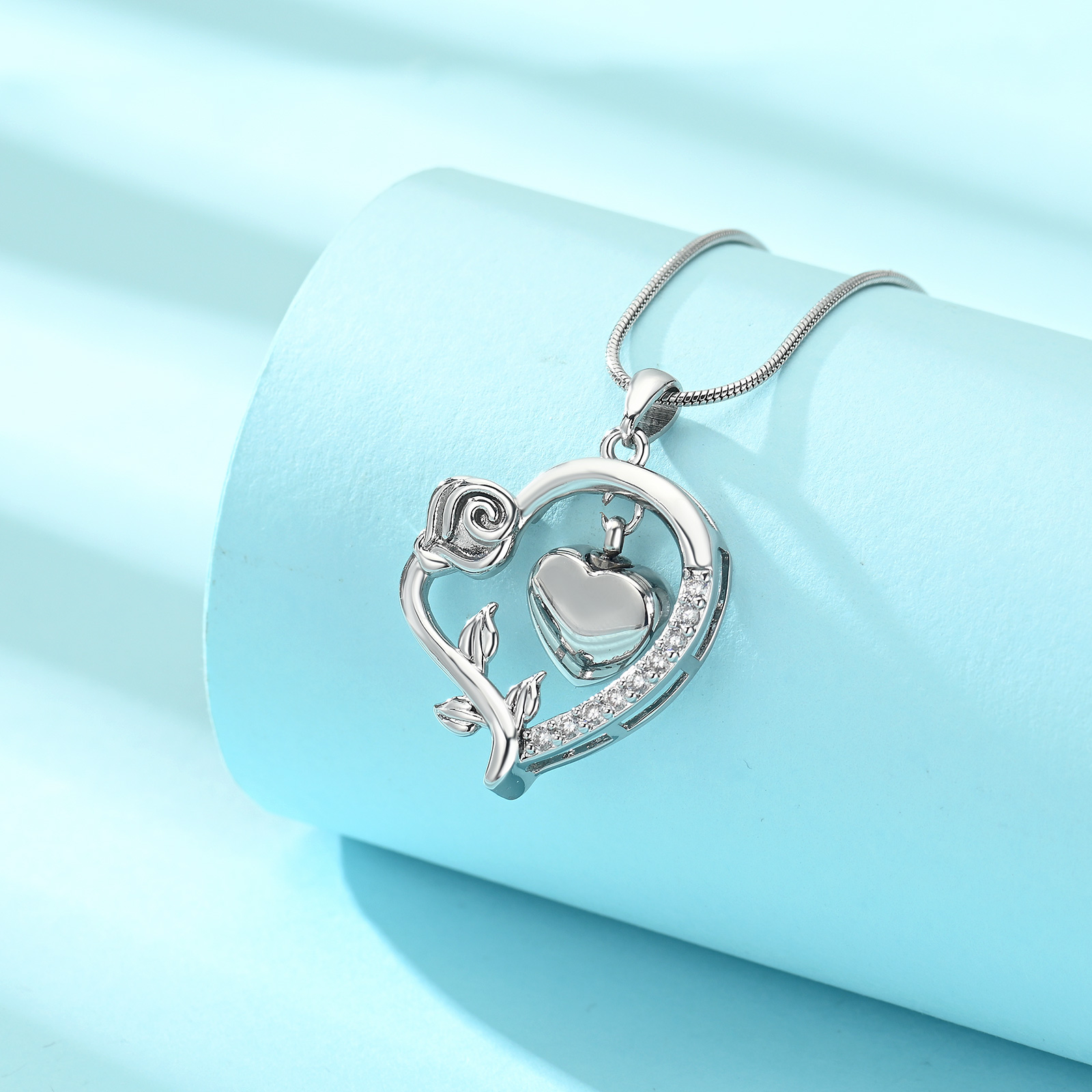 Tree of Life Rose Flower Heart Urn Pendant Cremation Jewelry for Ashes Necklace