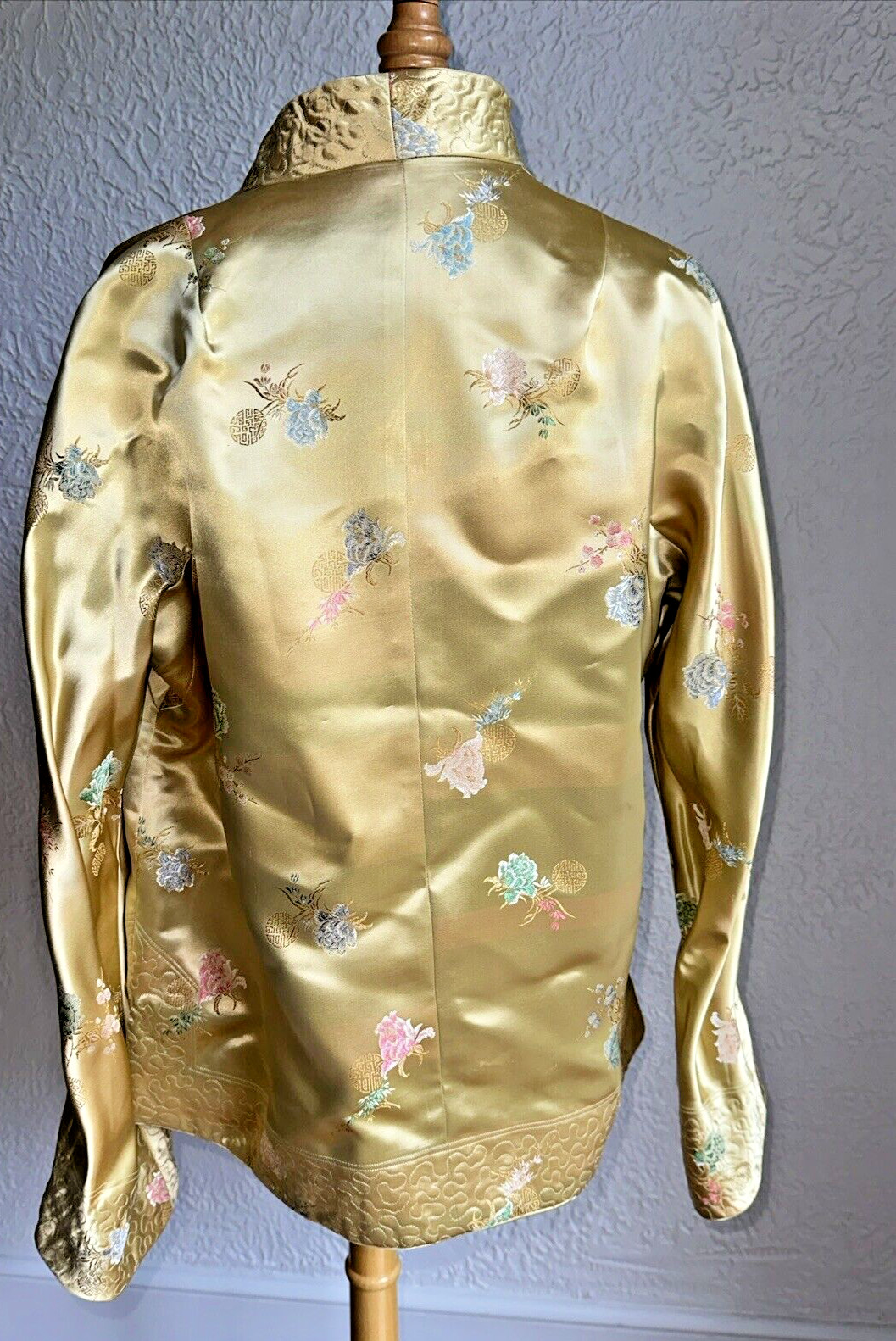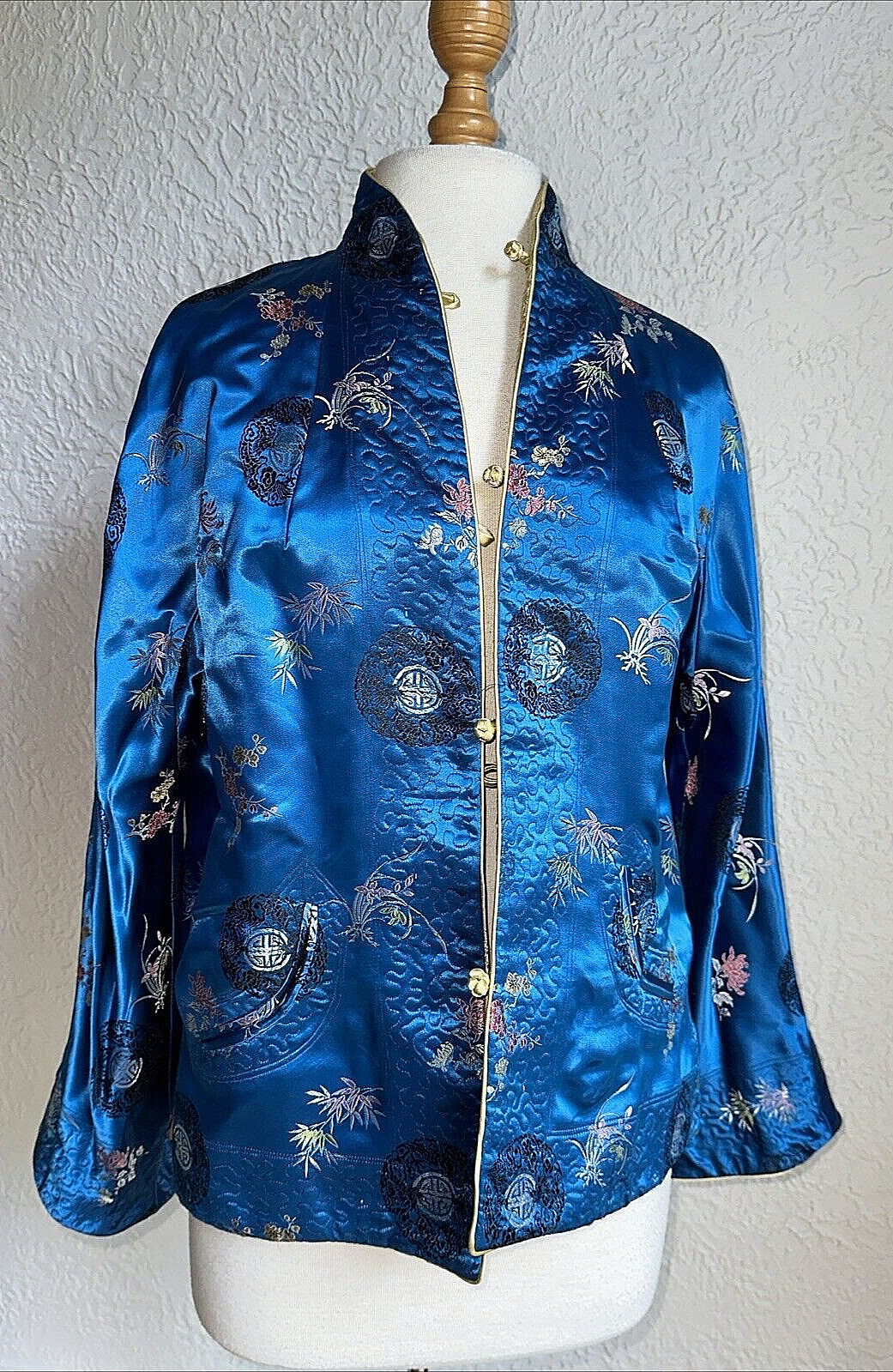 как выглядит Vintage Kimono Jacket Womens Gold Blue Reversible Asian Med/large фото