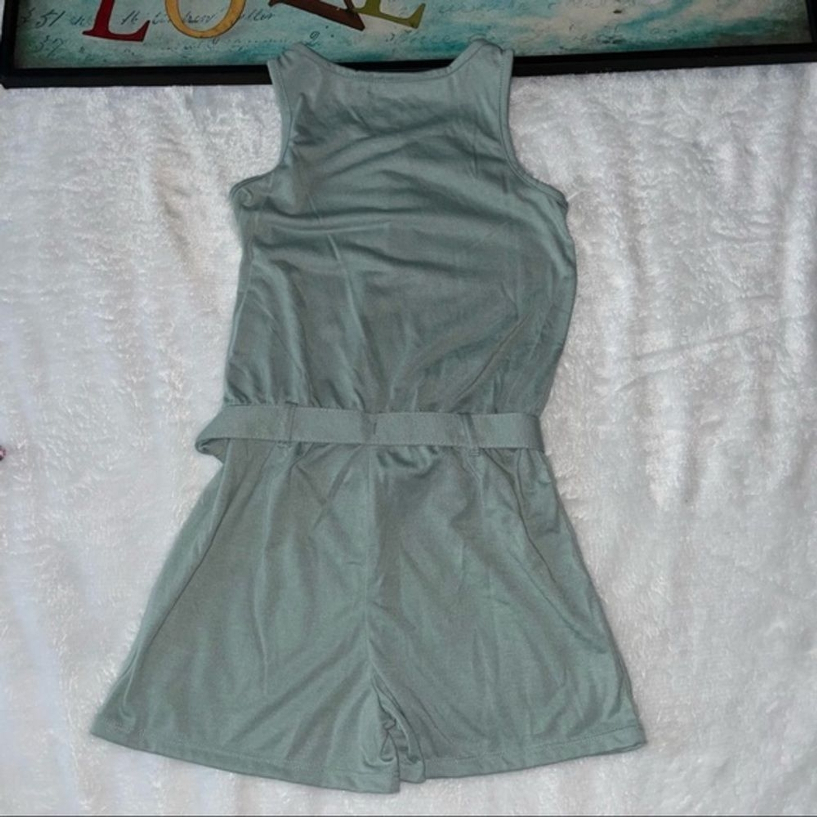 как выглядит New Wonder Nation Girls Romper Size 7/8 green sleeveless wrap front belt short фото