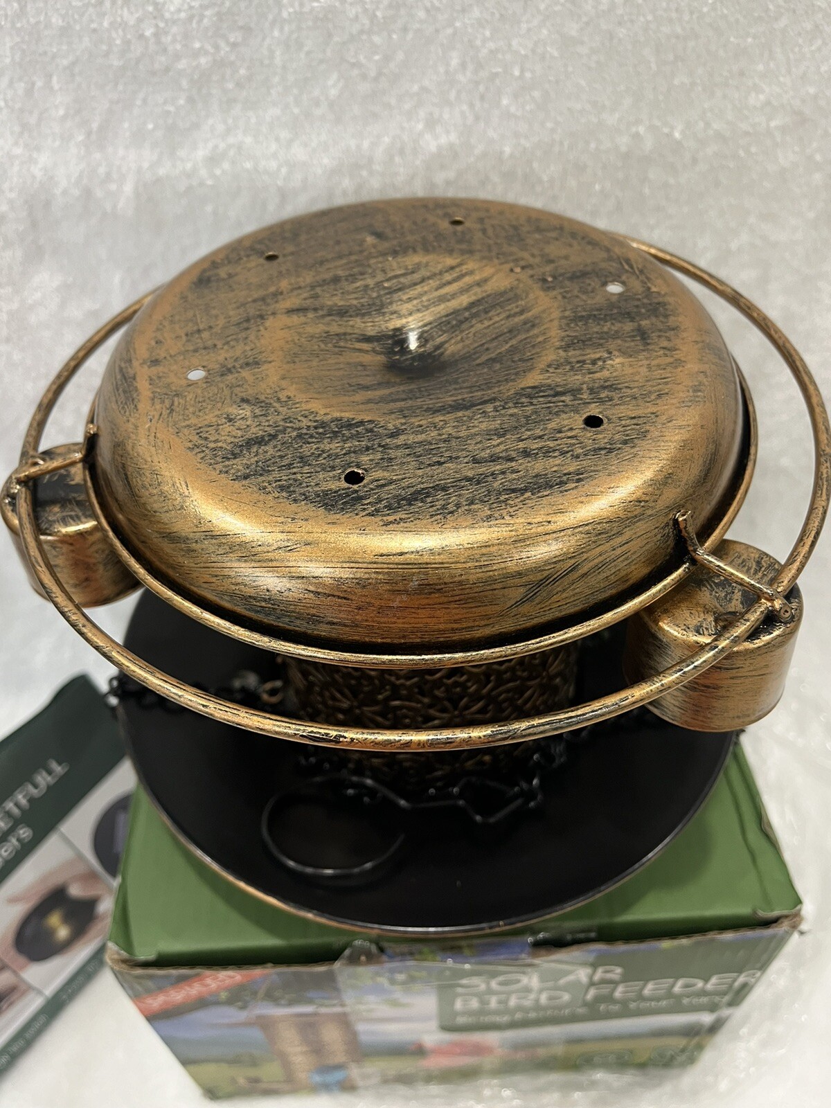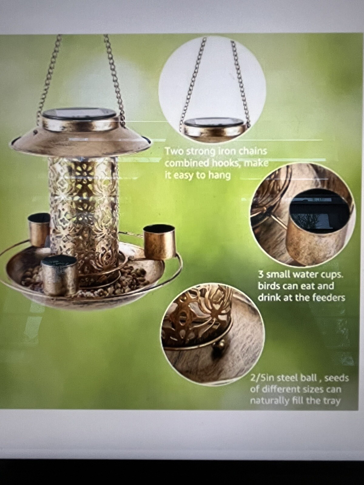 как выглядит Solar Bird Feeder Outdoor Hanging Metal Waterproof Wild Bird Feeder Decorative фото