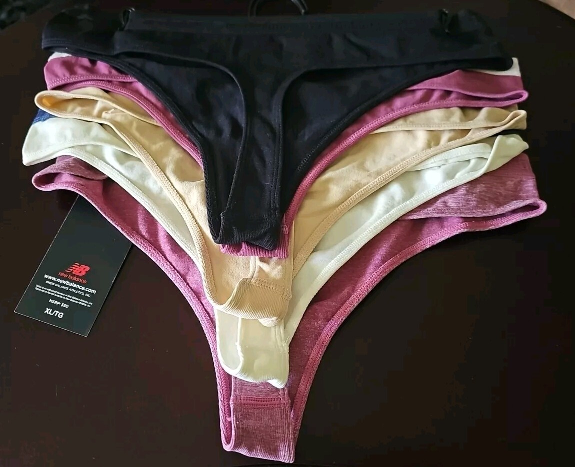 как выглядит NWT NEW BALANCE WOMENS THONG PANTIES 5 PACK MULTI XL LOGO MSRP 50.00 фото