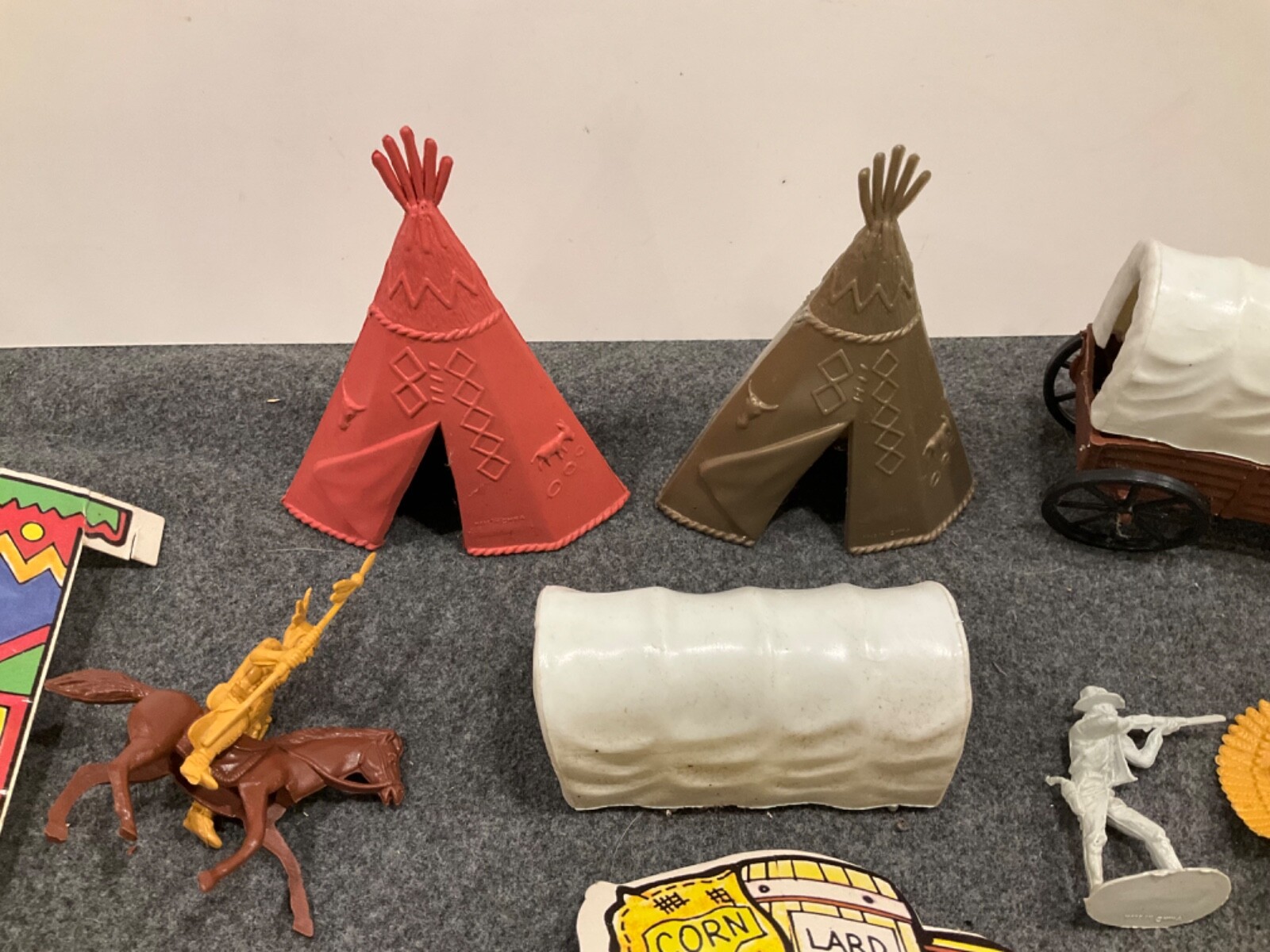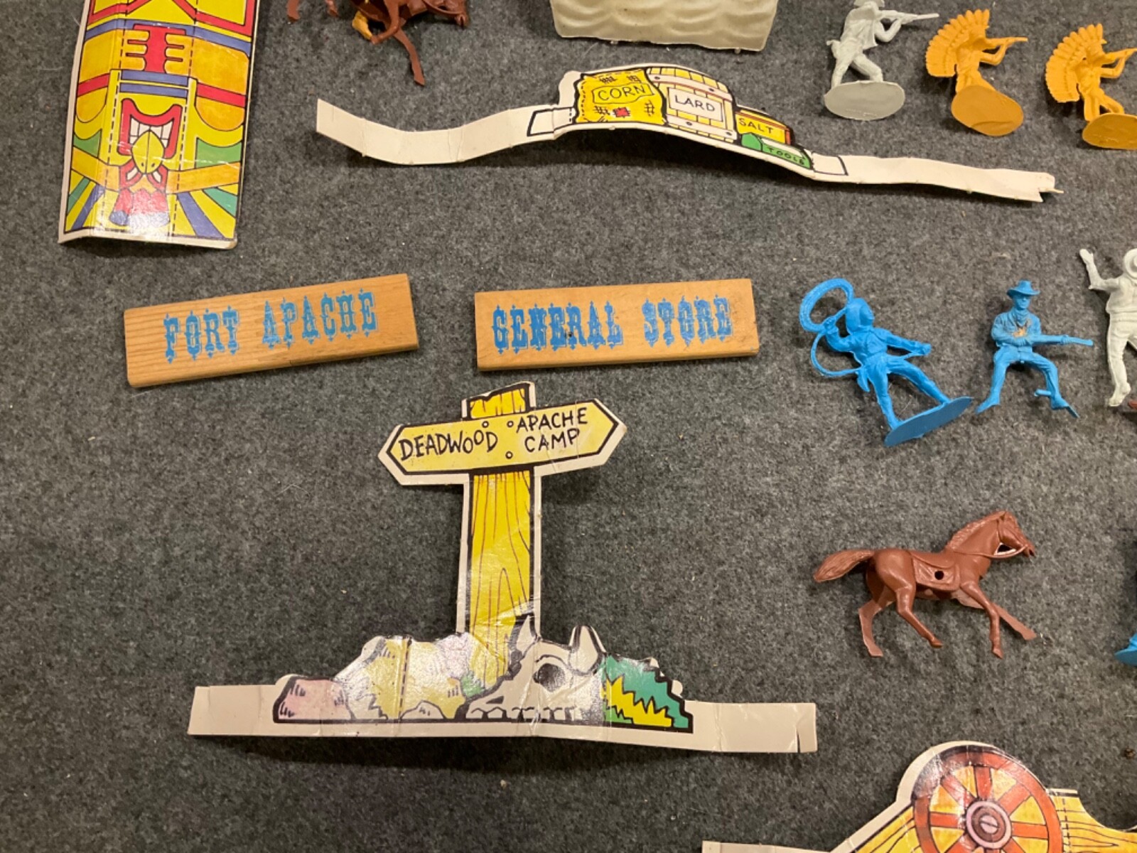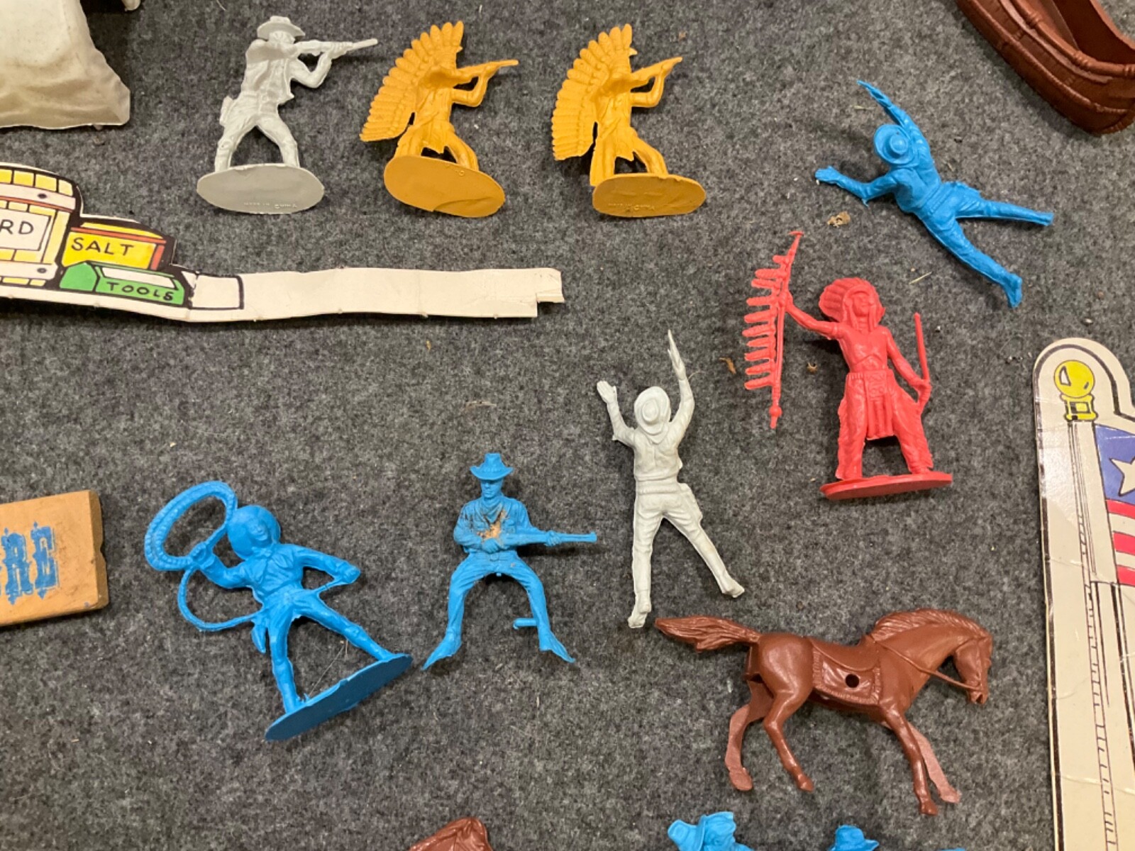 Vintage Marx Fort Apache Playset Indian Cowboys Figures Pony Teepee Totem Pole