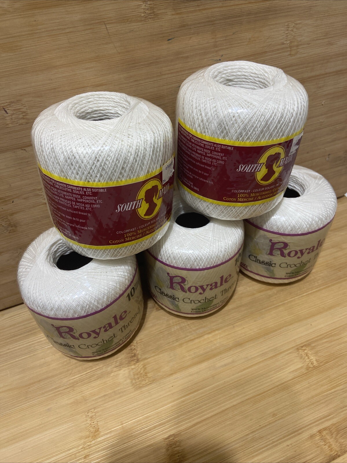 Lot Of 5 Crochet Thread Spools 100 Mercerized Cotton Sz 10 White 400 Yards Each