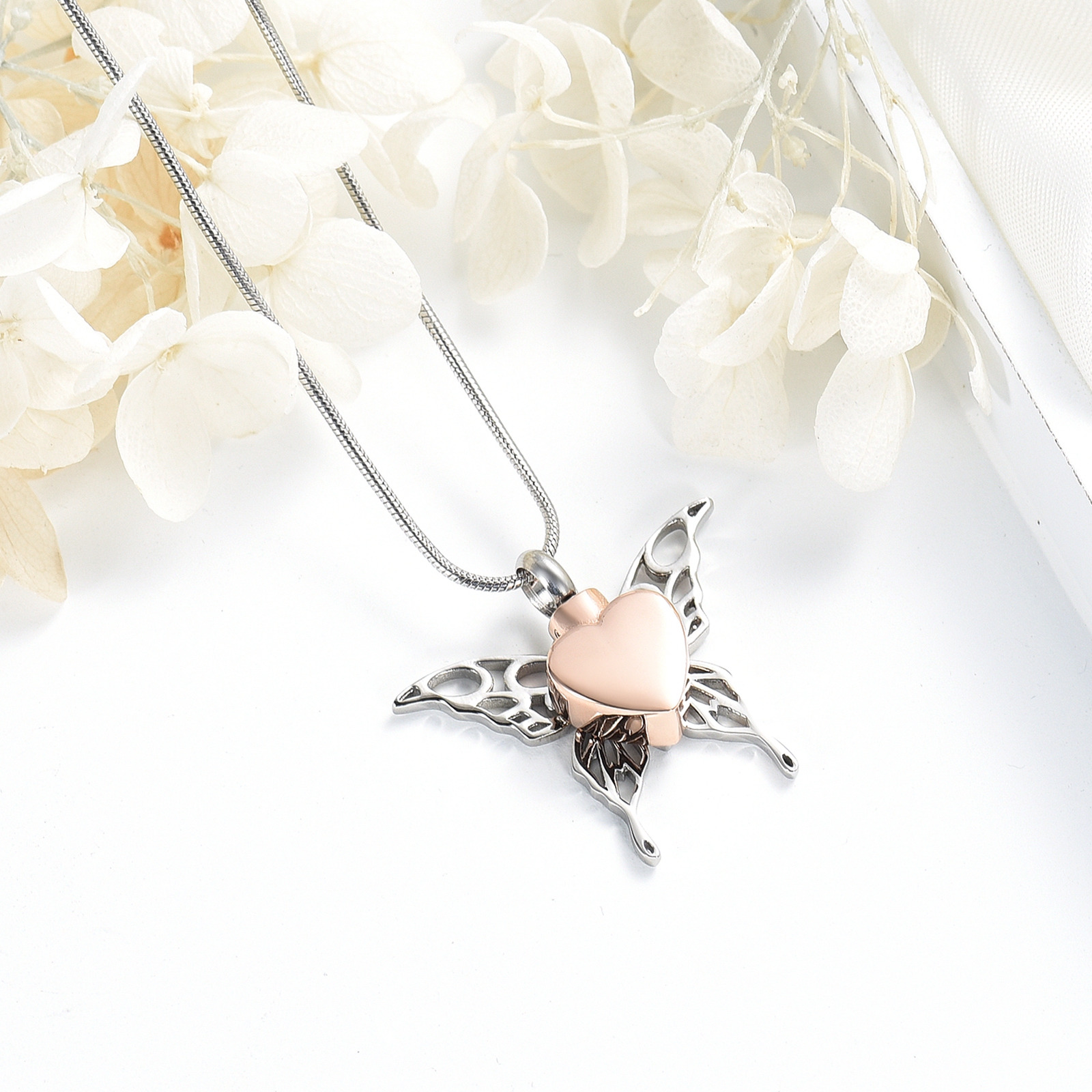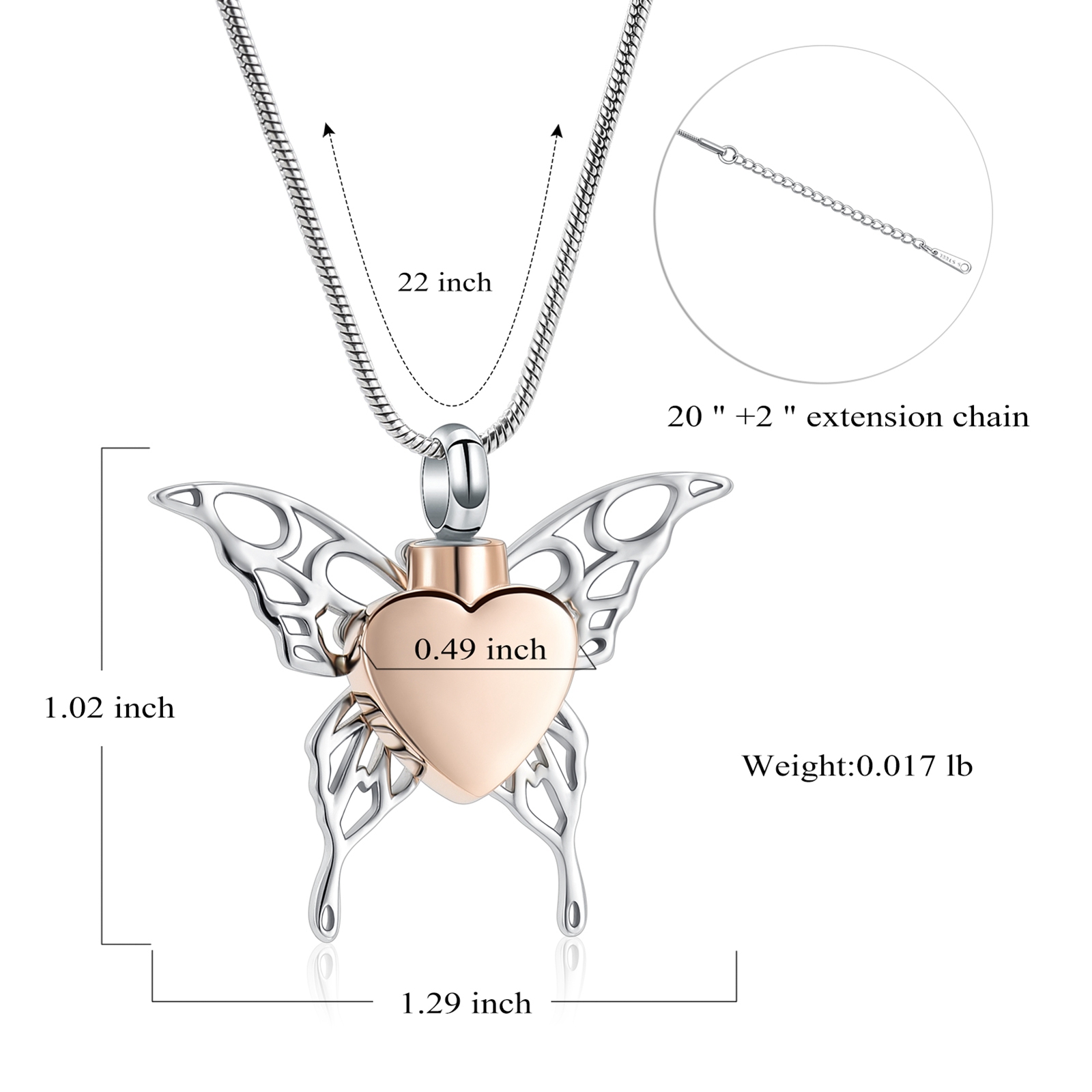 Butterfly Heart Urn Pendant Cremation Jewelry for Ashe Necklace Memorial Jewelry