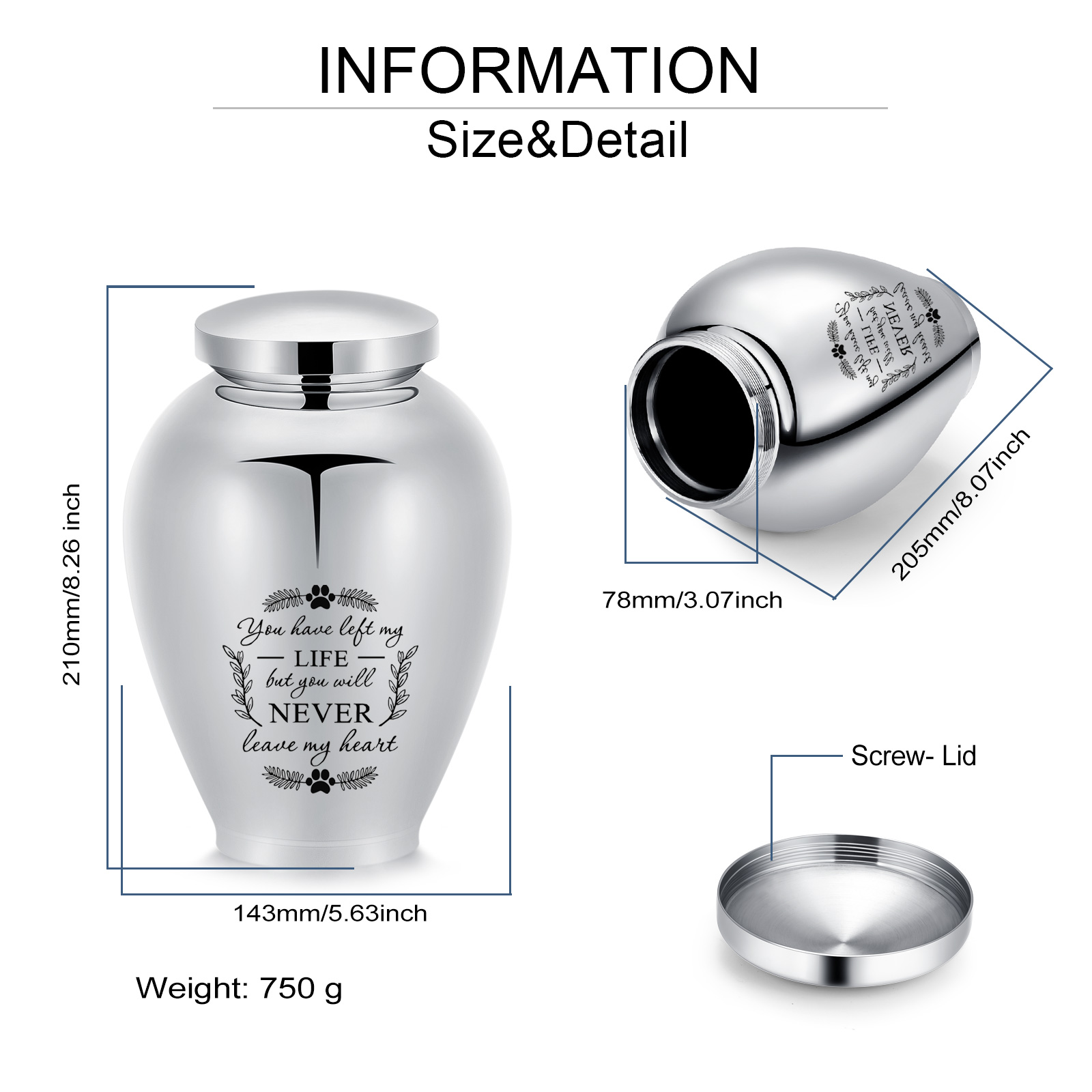 14.3 21cm Paw Prints Pet Memorial Stainless Steel Urn for Dog Cat Ashes Gift