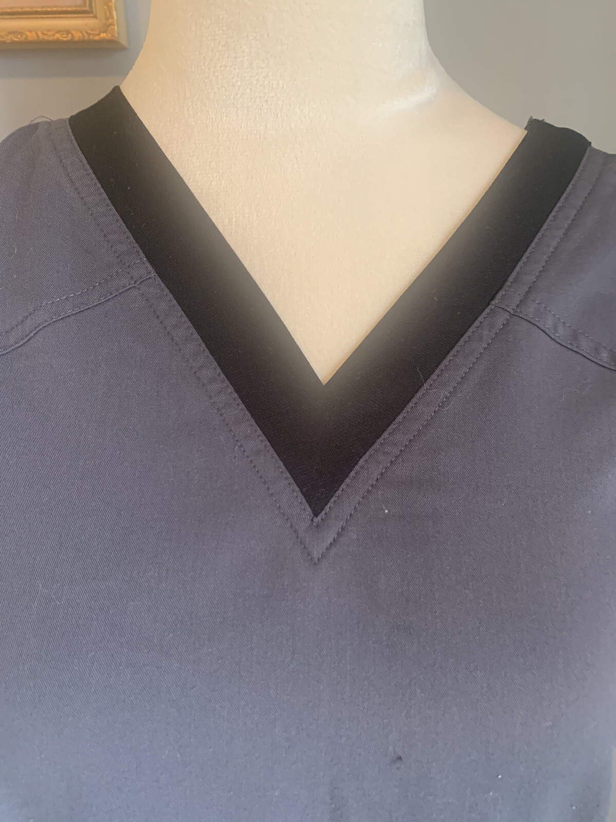 как выглядит Scrubstar Scrub Top Gray Black Stretch Sides V Neck XS фото