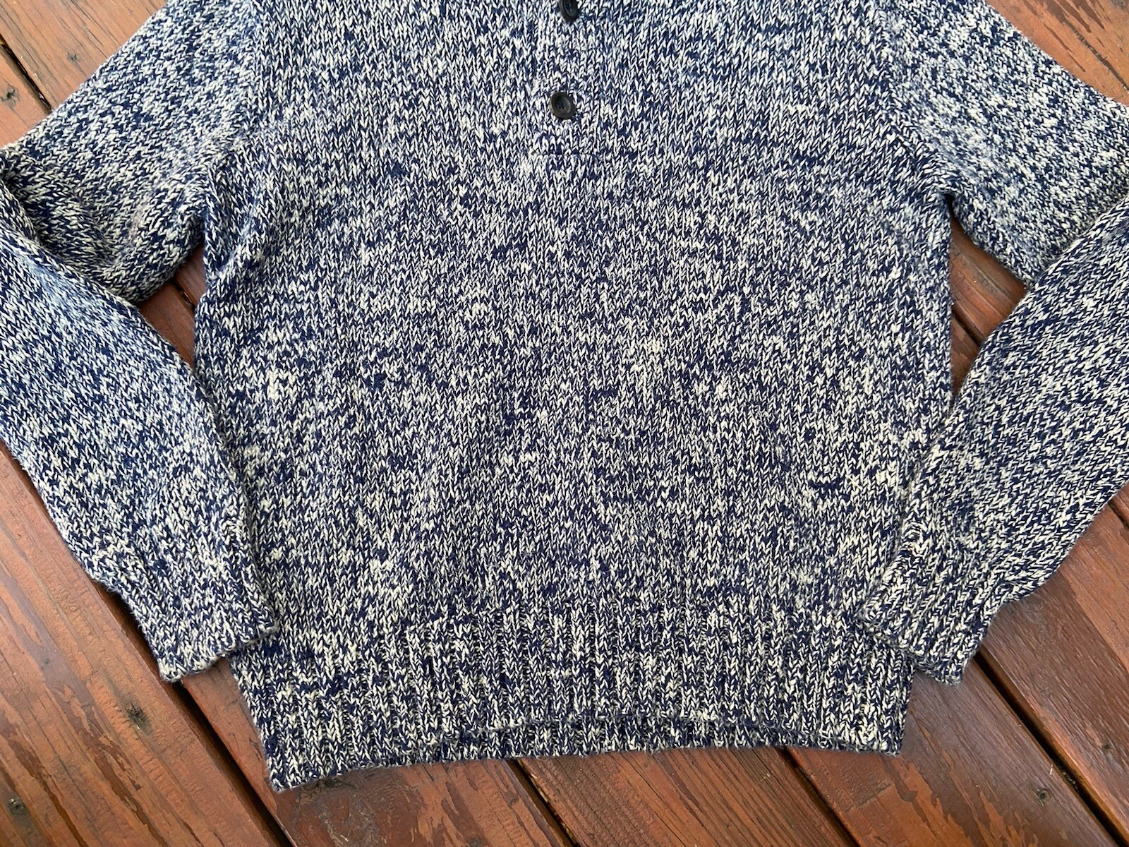 Vintage Polo Ralph Lauren Jumper Mens Large Blue Beige 1/4 Button Cotton Knit